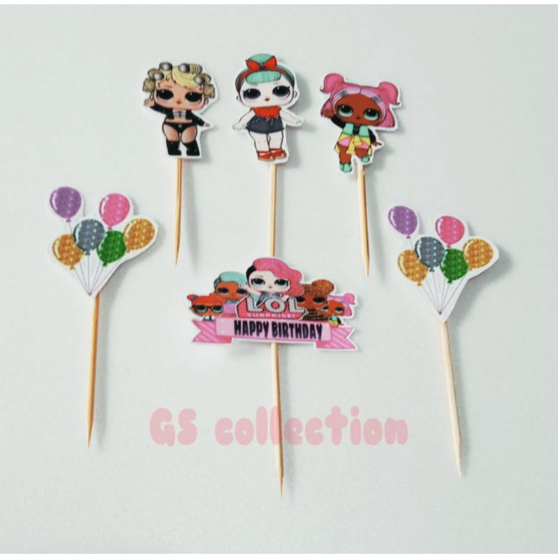Topper kue karakter LOL isi 6/Hiasan kue ulangtahun/ Topper happy birthday/cupcake topper