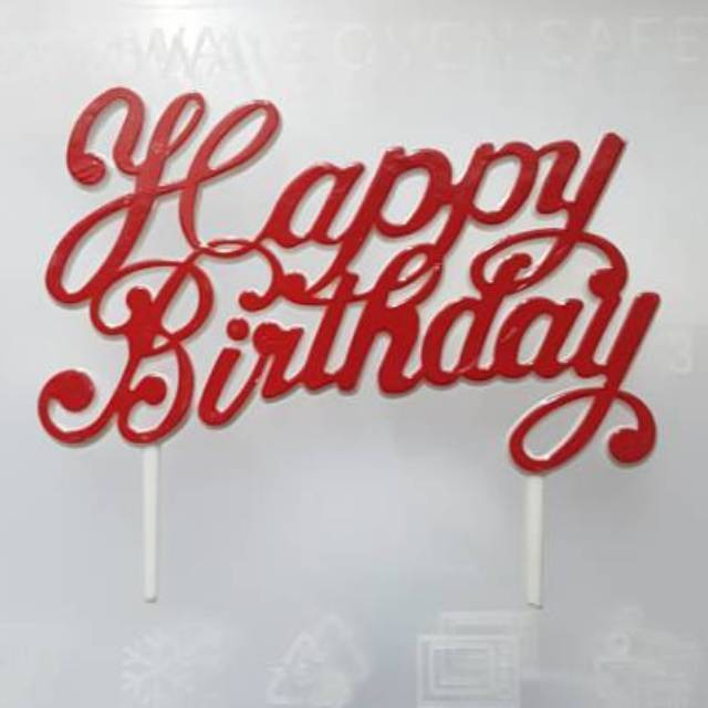 Topper tusuk happy birthday hiasan kue tart topper selamat ulang tahun merah 2 tusuk