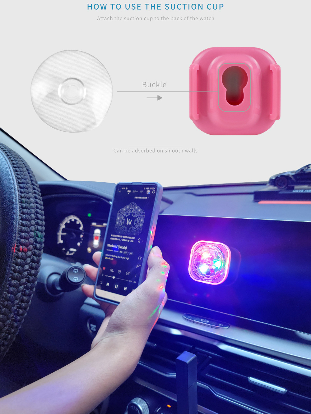 Topspot Lampu Disko Mini Portabel Berputar Lampu Pesta Gelang Disko dengan Suction Cup untuk Lampu RGB Strobo Lampu Led DJ Berubah dengan Musik Cocok untuk Pesta Ulang Tahun Gelang Lampu Panggung Lampu Dansa Anak