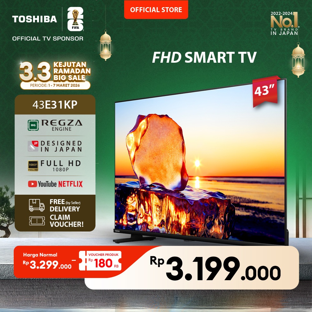[FHD Smart TV] [KHUSUS ONLINE] Toshiba TV 43" FHD Smart TV - WIFI Netflix Disney+ Youtube Dolby Audio Screen Sharing HDMI Digital - 43E31KP