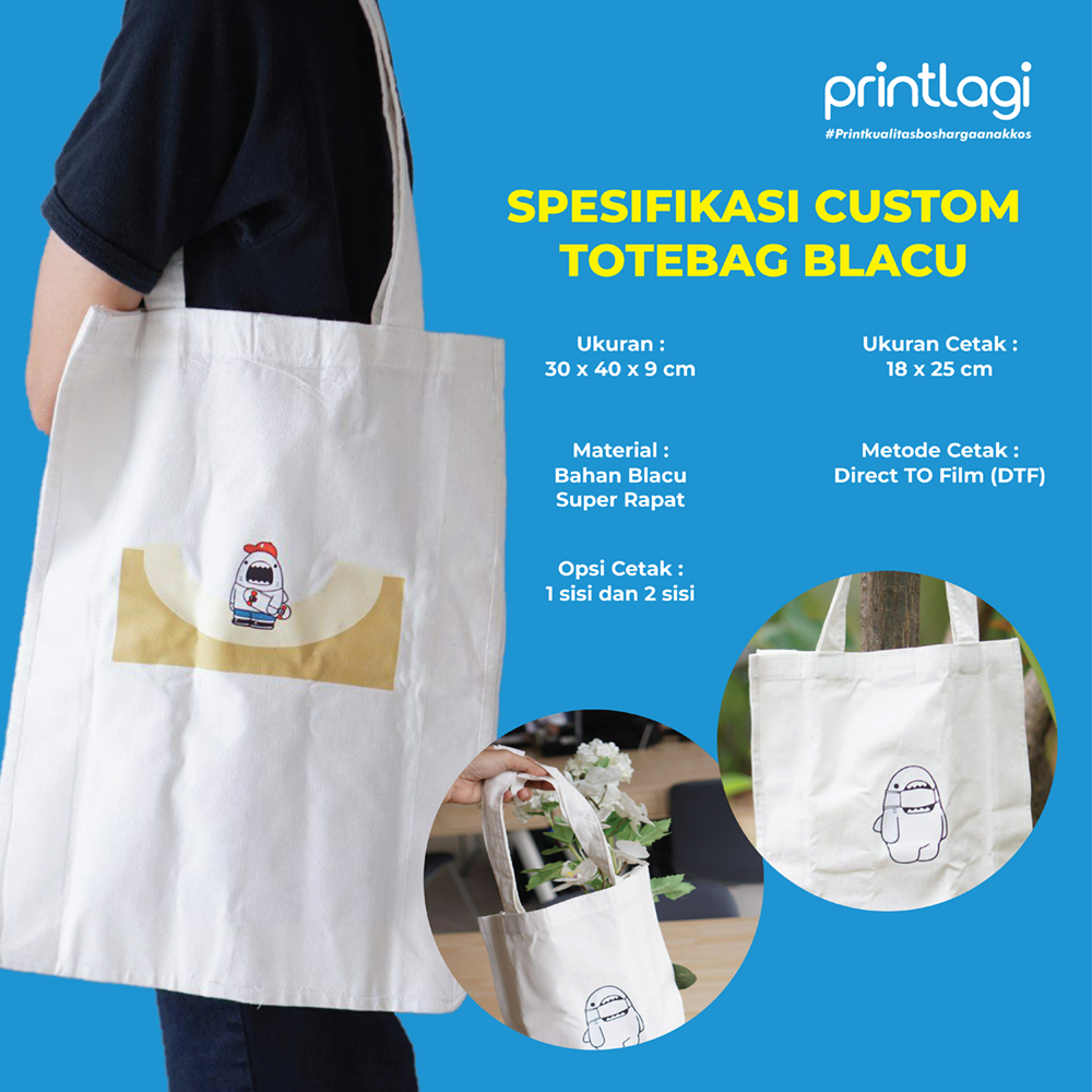 Totebag Blacu Custom Logo / Totebag Blacu Super Rapat / Totebag Cetak DTF