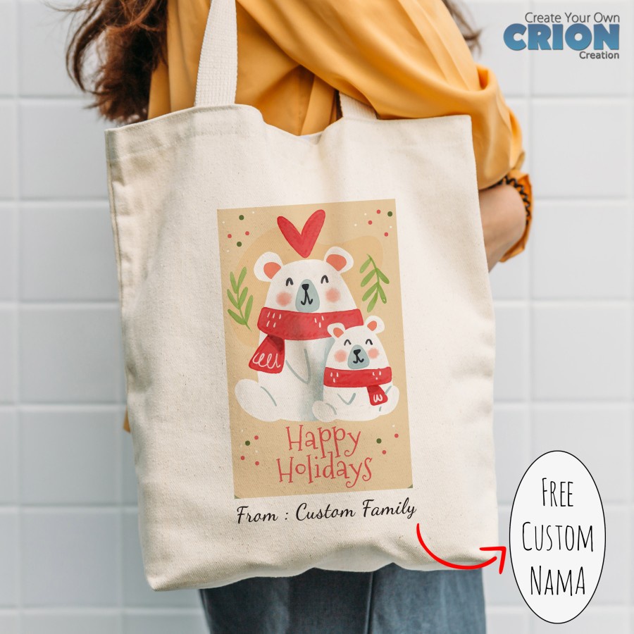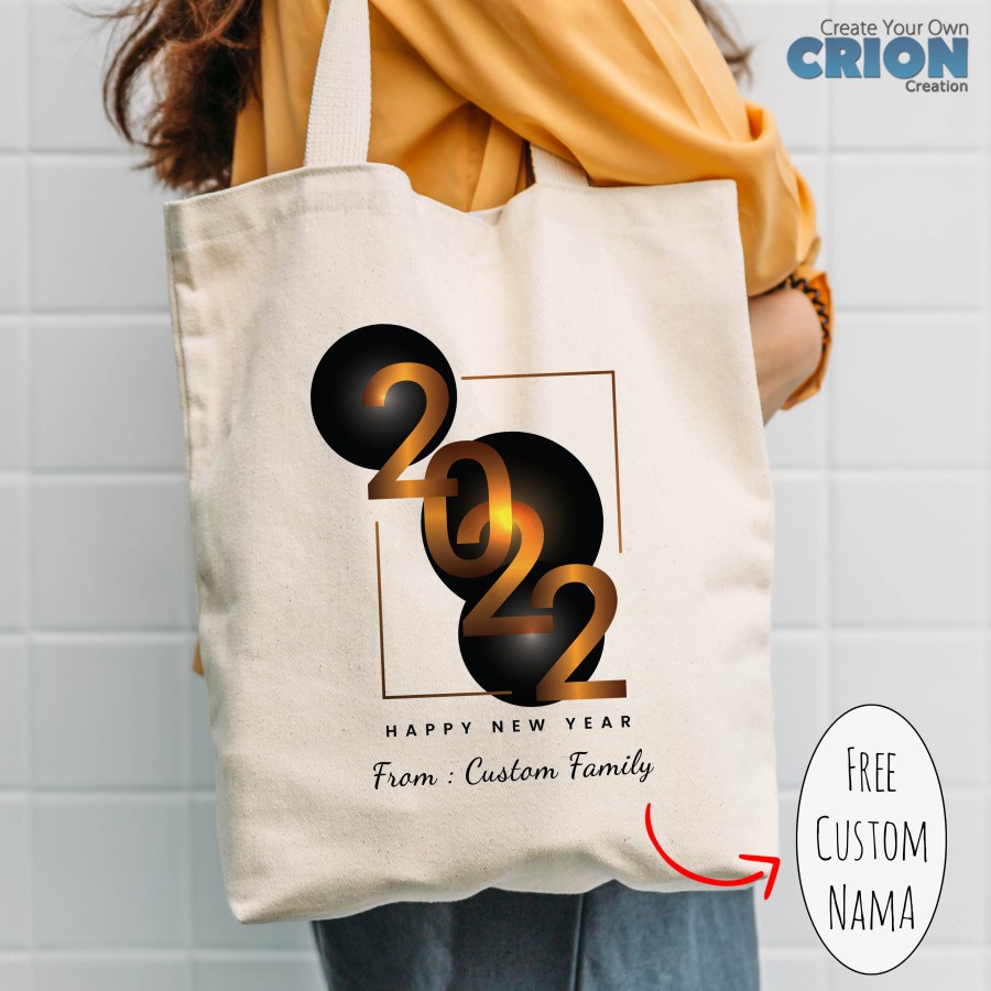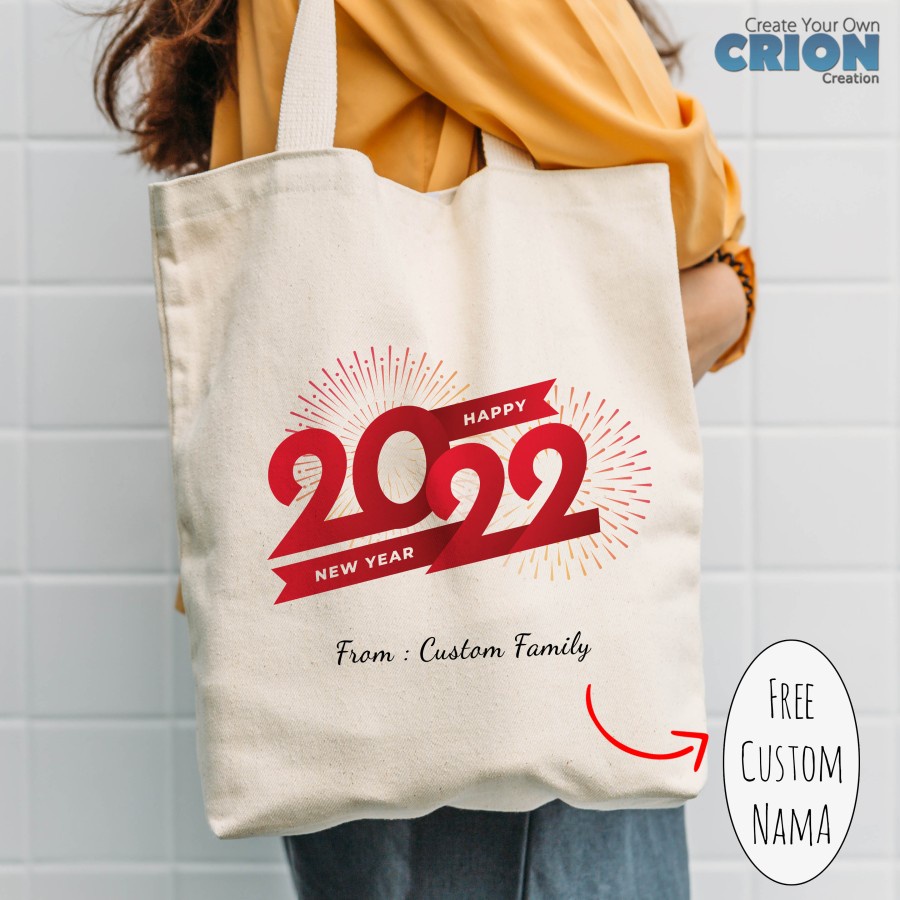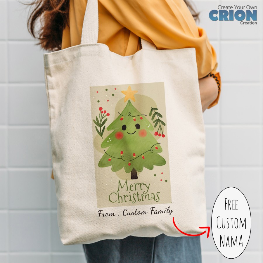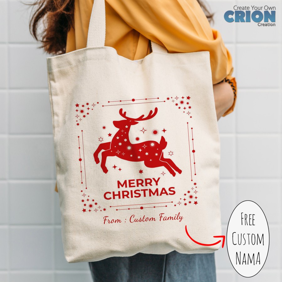 Totebag Blacu Natal Christmas series & Tahun Baru Bisa Custom ucapan / nama / kata