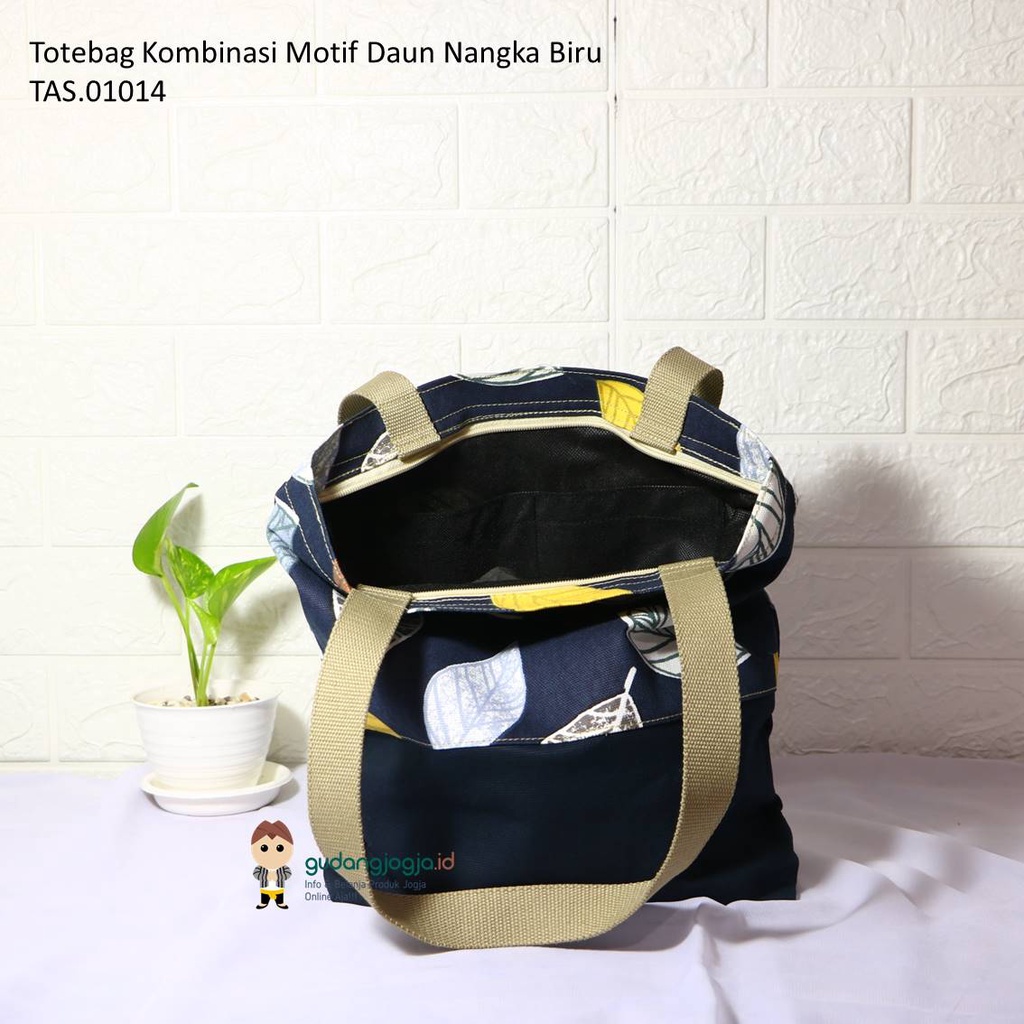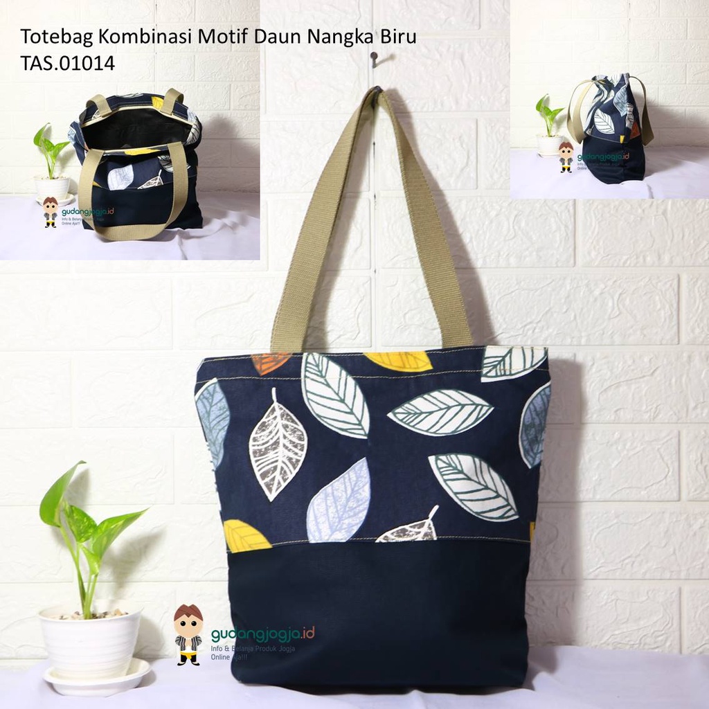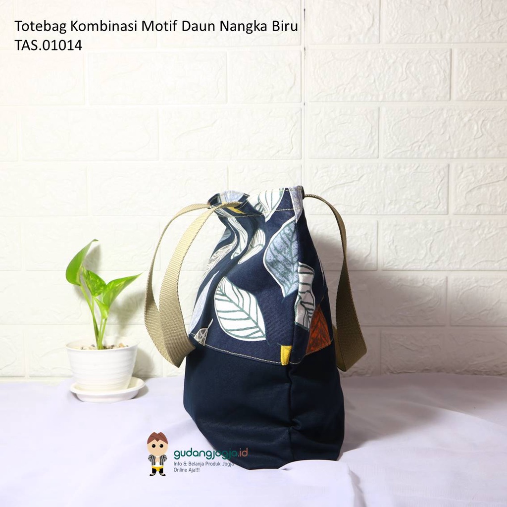 Totebag Kanvas Kombinasi Motif Daun Nangka Biru. Gudangjogjaid