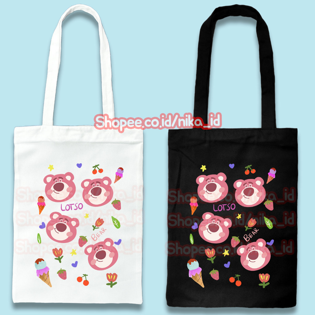 Totebag Kanvas Resleting Toy Story Lotso Hitam / Putih Lucu Gambar Tote bag Tebal Aesthetic Premium Lucu Style Tas Kanvas Aesthetic Tas Kekinian Putih Sekolah kuliah Cute Cocok Pria/Wanita