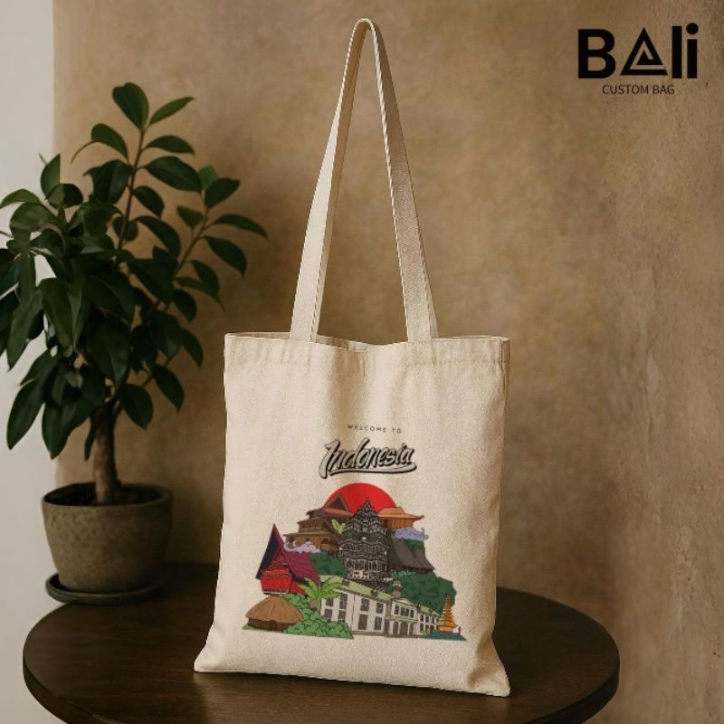 Totebag Kota Indonesia / Goodiebag Aesthetic / Tas Wisata Nusantara / Tote Bag Resleting High Quality