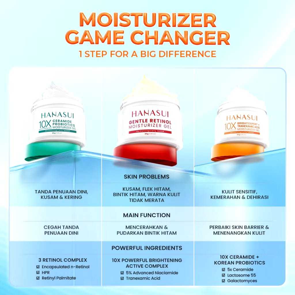 HANASUI Bright Expert Moisturizer Gel 30g - Pelembab Gel Bening Lembap & Mencerahkan - 5% Advance Niacinamide & Tranexamic Acid