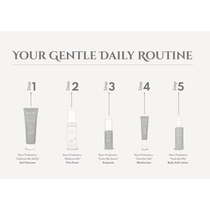 NPURE NONI PROBIOTICS SERIES-GEL CLEANSER-FINE TONER -AMPOULE- MOISTURIZER- BODY SOFT LOTION (SENSITIVE SERIES)