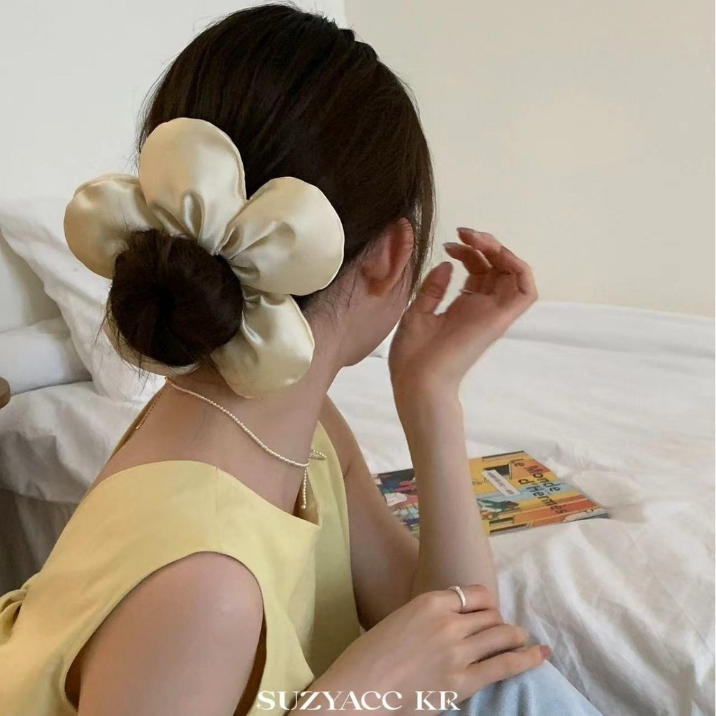 Town Shell - Balloon Metalic Flower Korean Jumbo Scrunchy / Scrunchie / Ikat Rambut Super Jumbo Bunga / Cepol Hijab