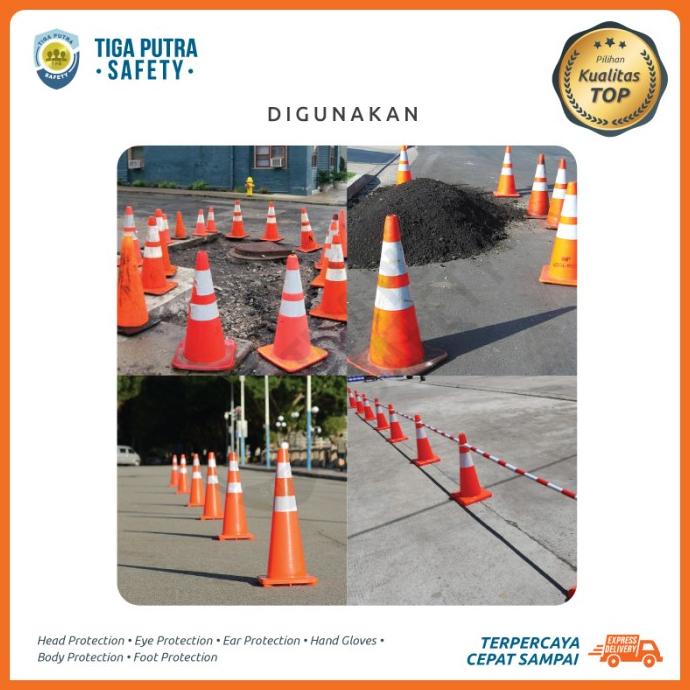 Traffic Cone 75 cm Lentur. Kerucut Trafic Safety PVC Orange.