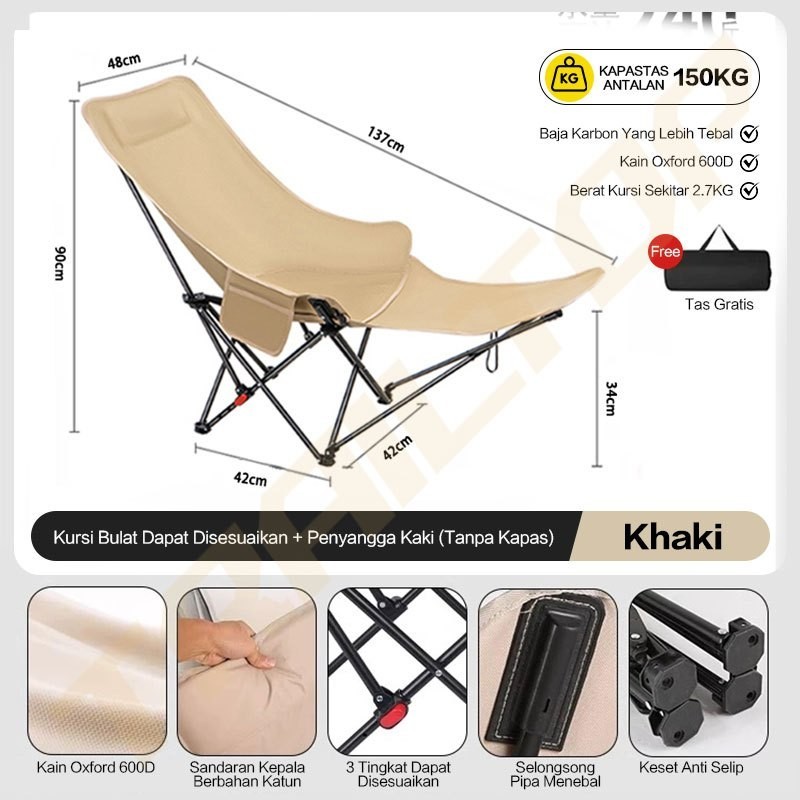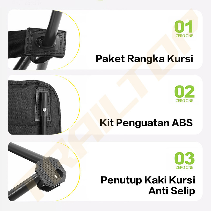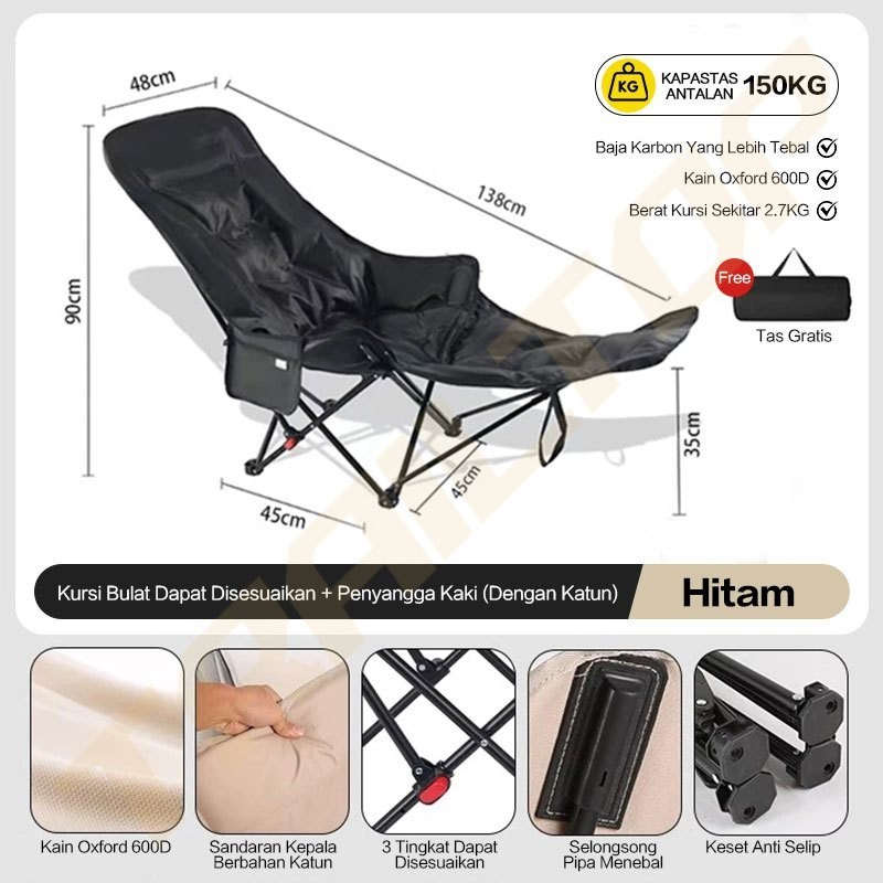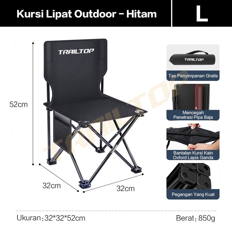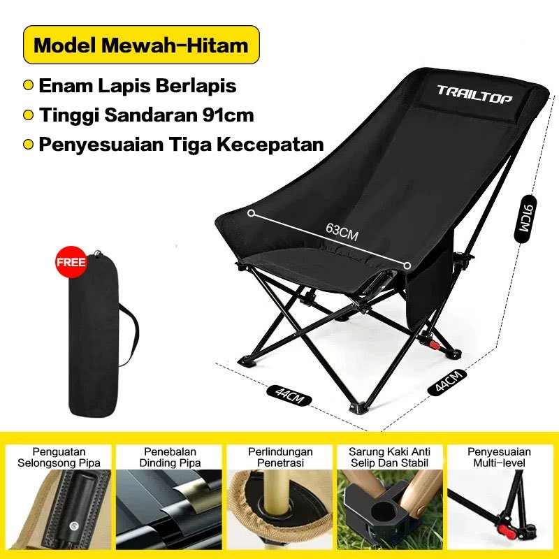 TrailTop Kursi Lipat Sandaran Tinggi Adjustable dengan Busa Kepala Kursi Camping Lebar Tebal Kuat 160KG