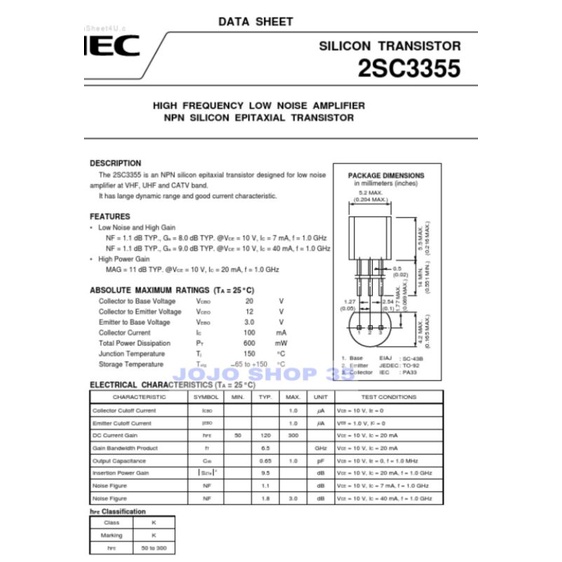 Transistor C3355 C 3355 2SC3355 2SC 3355 high quality Harga untuk 1pc
