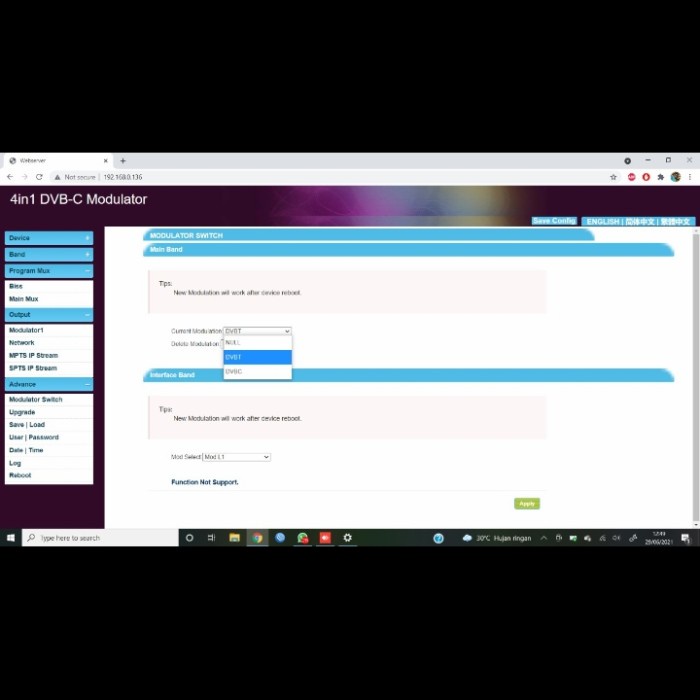 Transmodulator DVB-S to Dvb T/C RF Out
