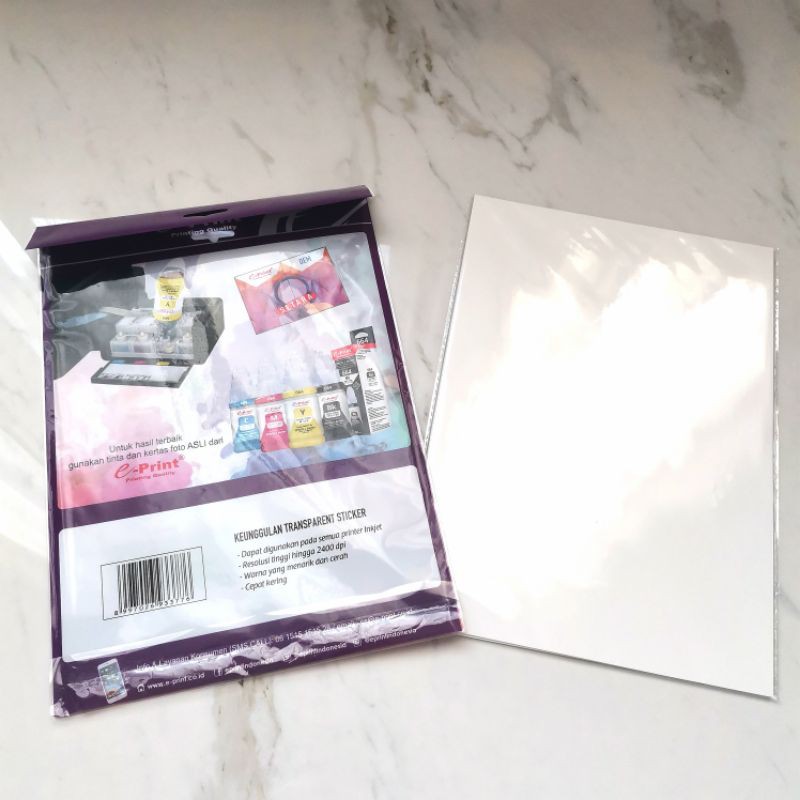 Transparent Sticker A4 150 gsm E-print. STIKER TRANSPARAN EPRINT A4