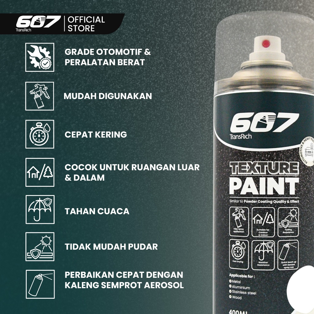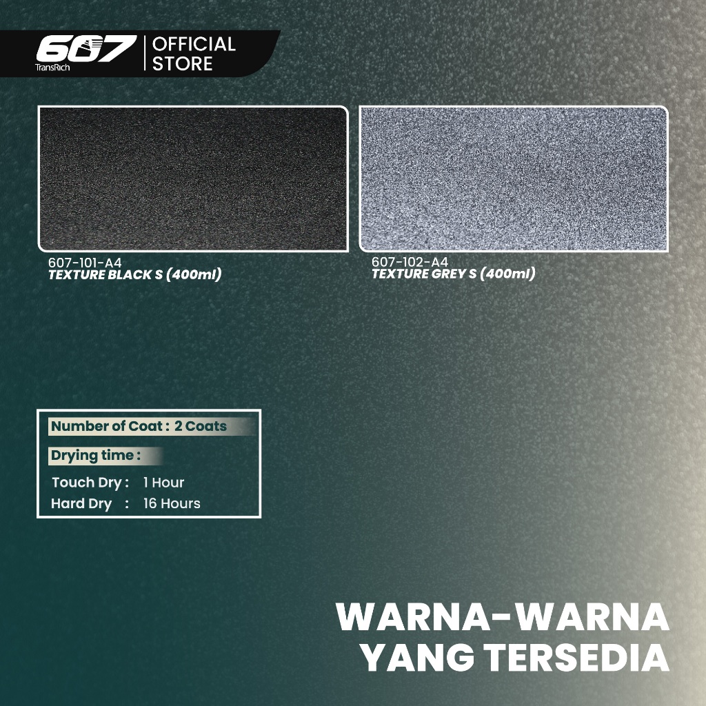Transrich 607 Cat Semprot Texture Paint-Cat Semprot Mirip Hasil & Kualitas Bubuk Powder Coating-Efek Tekstur-Bubuk Powder Coating Black-Cat Semprot Stainless Steel, Aluminum, Steel-Texture Black S