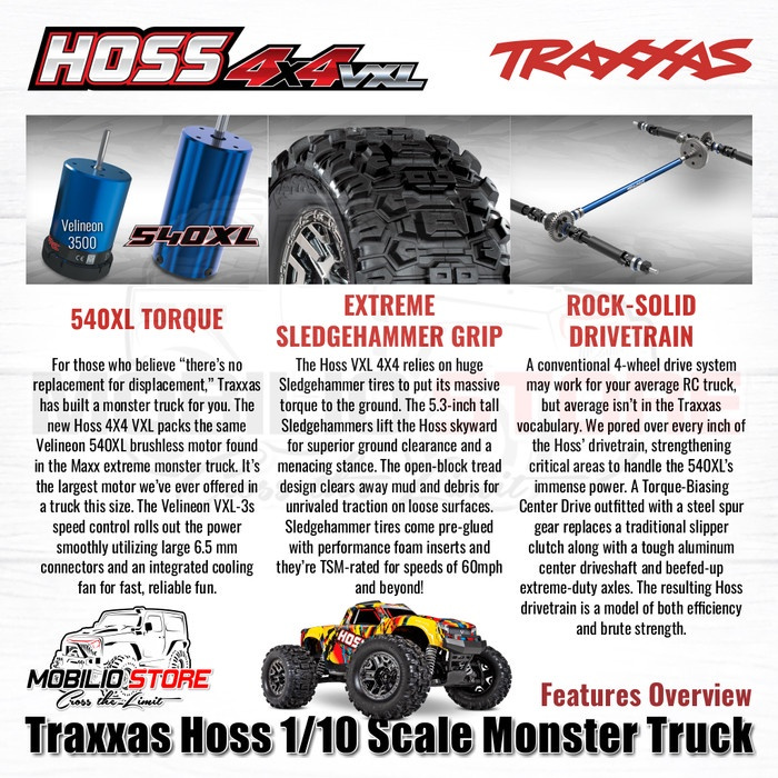Traxxas Hoss VXL 1/10 RTR Monster Truck 3S Brushless 4X4 Rc Truck