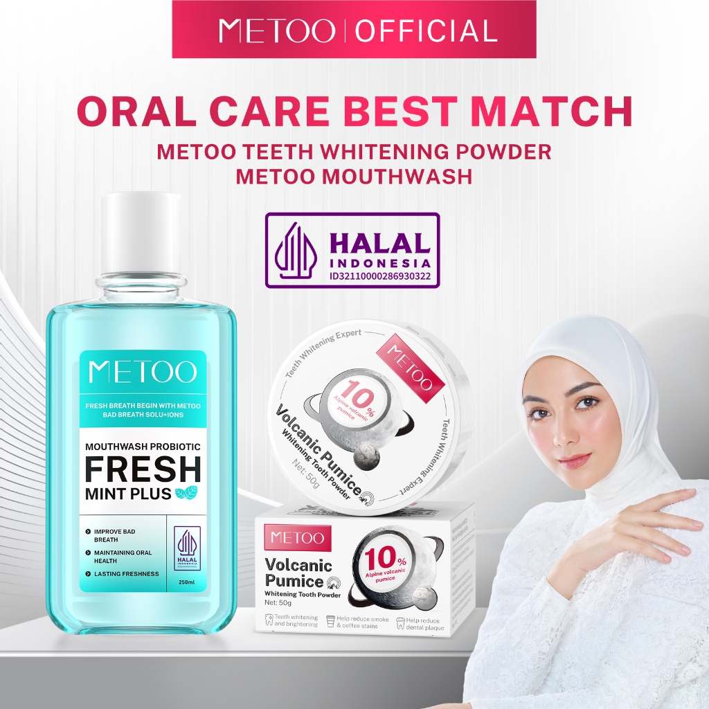MeToo Volcanic Pumice Whitening Tooth Powder 50g+ Fresh Mint Mouthwash 250ml / Oral Care Set /Probiotik / nafas segar / menghilangkan bau mulut / kumur karang gigi / mengurangi noda pada gigi / non-alkohol