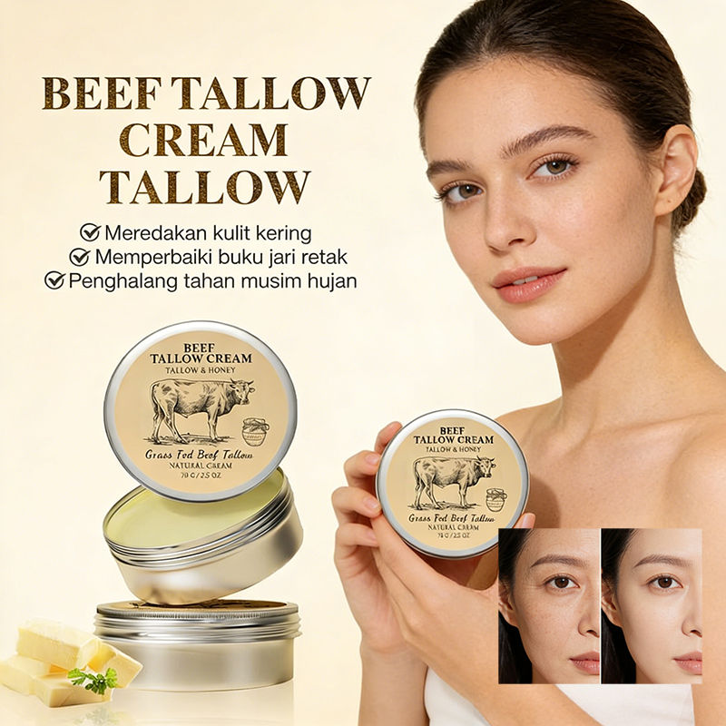 [Ramanda Sale] Premium Beef Tallow Balm Original 100% Grass Fed Natural Whipped Tallow Moisturizer 70G Pelembab Anti Aging Cream Calming Untuk Kulit Sensitif