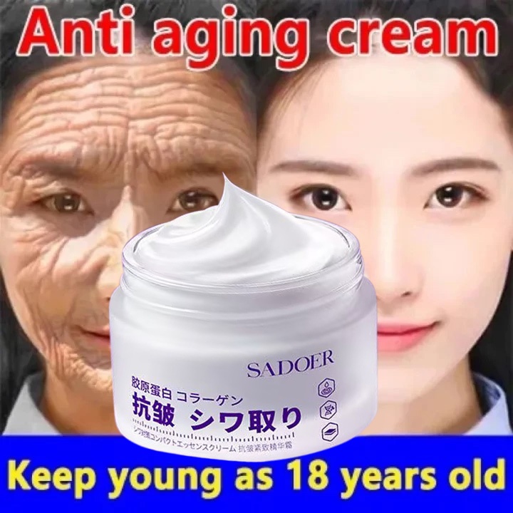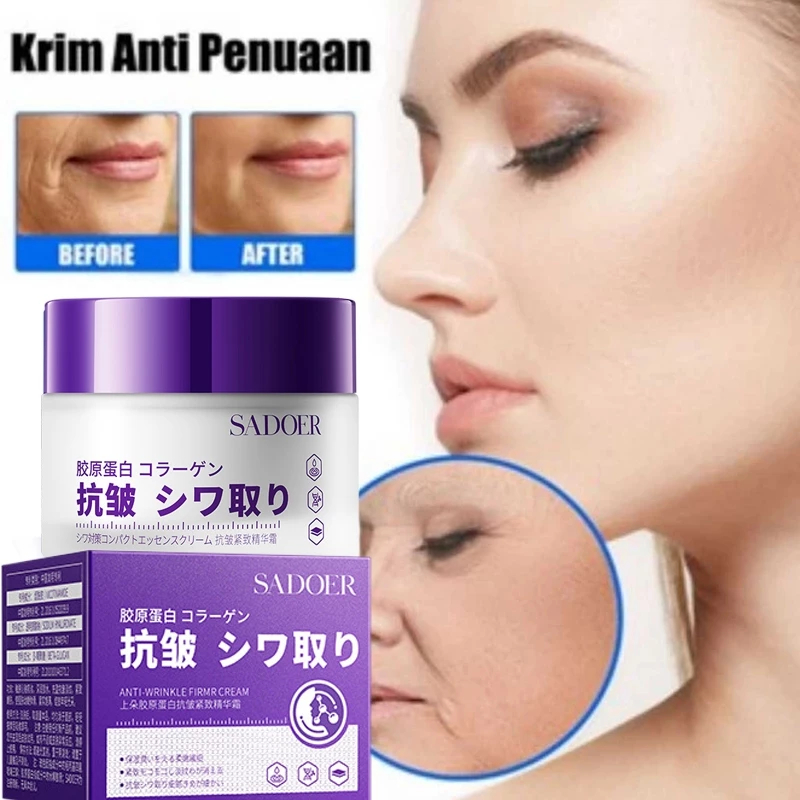 Collagen Cream Anti Wrinkle Cream 50g Krim Anti kerut Anti Penuaan Pemutih Penghilang Flek Hitam membandel Menghilangkan kerutan wajah Mencerahkan Anti Aging Memudarkan Garis Halus Krim Pemutih dan Pelembab Wajah Day Cream Night Cream