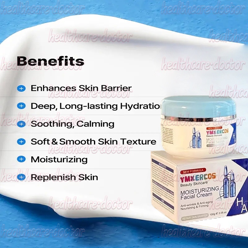 Hyaluronic acid Face Cream Krim wajah pelembap Skin Barrier Repair Moisturizer 100g Moisturising Cream for Dry Skin penghilang flek hitam membandel Mencerahkan Kulit Anti Penuaan Anti-kerut krim siang malam Whitening Anti Aging pelembab Wajah glowing