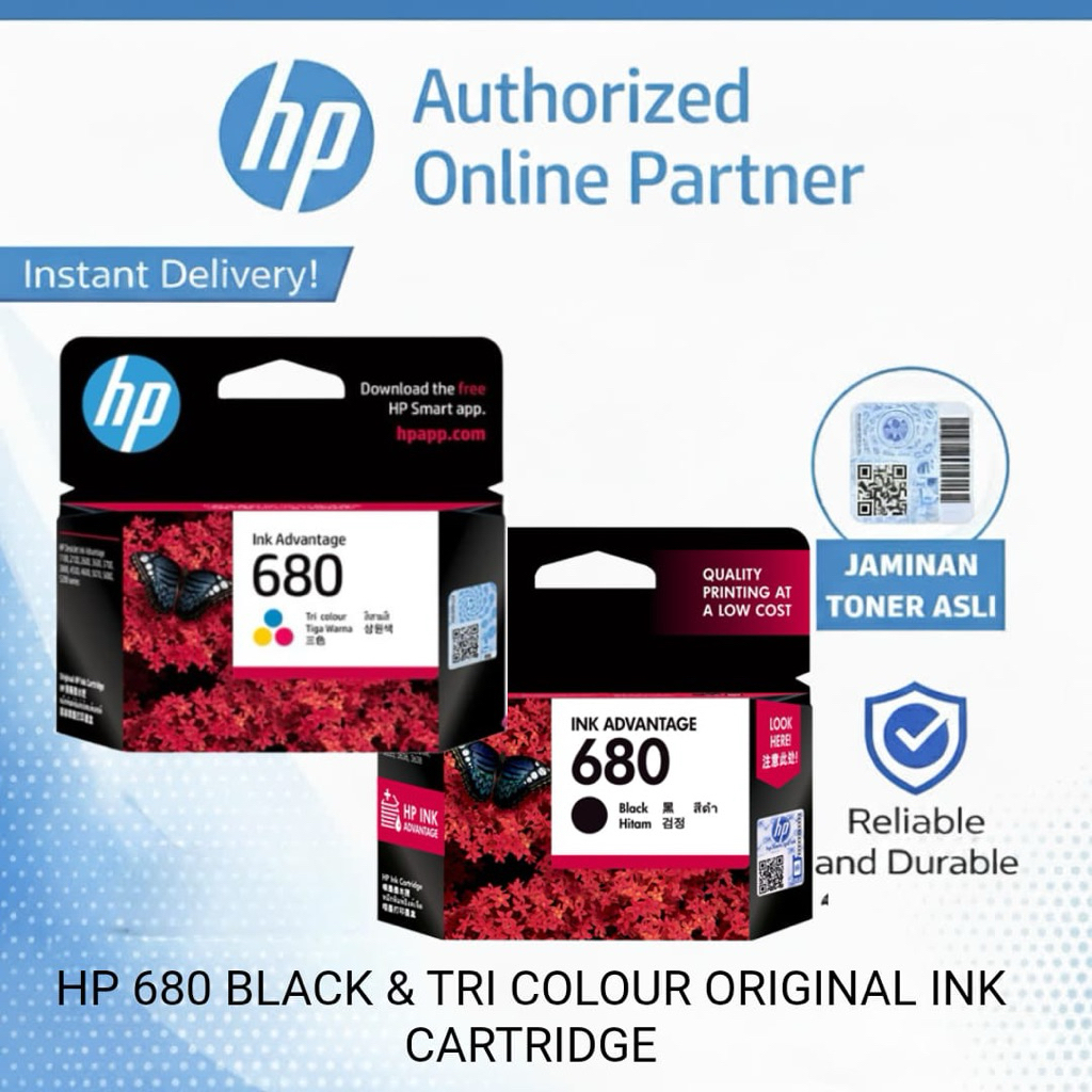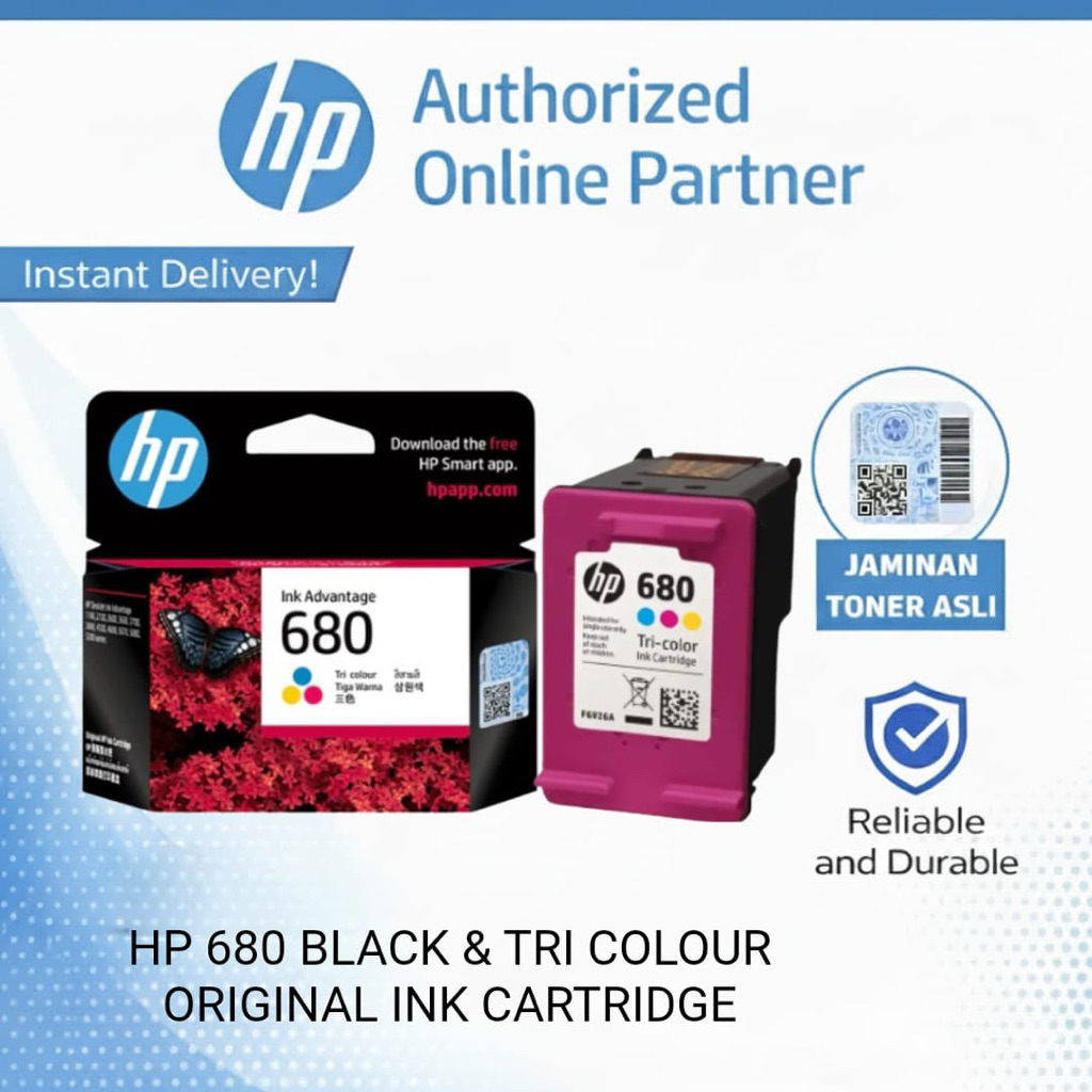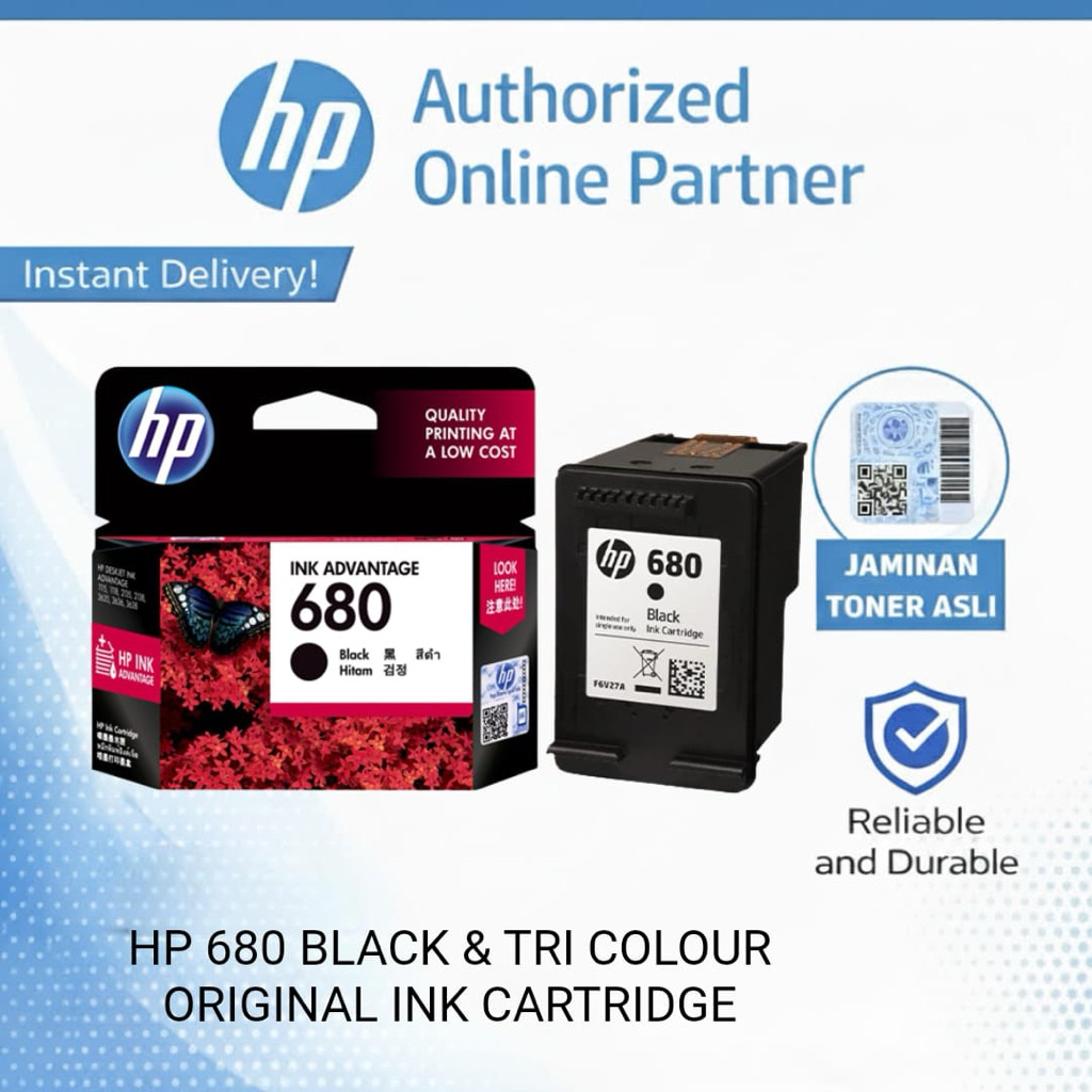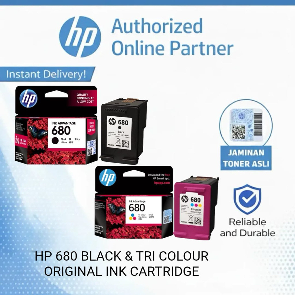 Tinta Printer HP 680 Original Black - Color Ink Cartridge Asli
