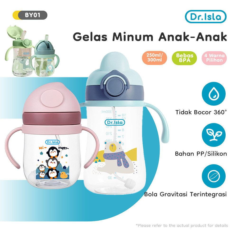 Dr.Isla Botol Minum Bayi 250ml 300ml Botol Minum Anak Karakter Kartun Lucu Jerami Botol Air BY01