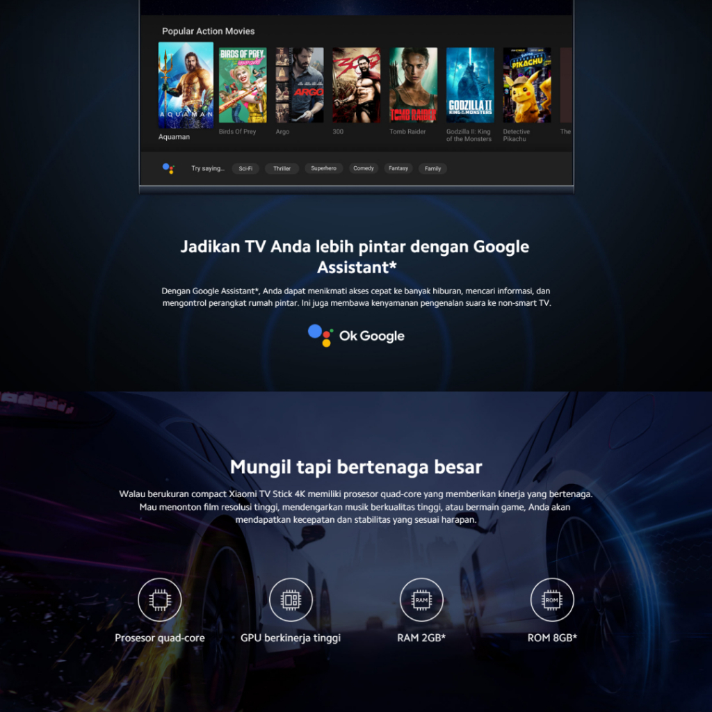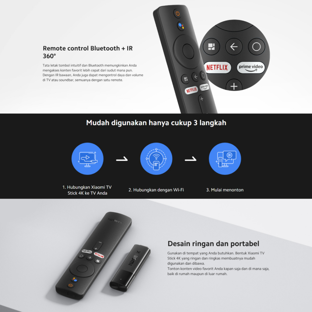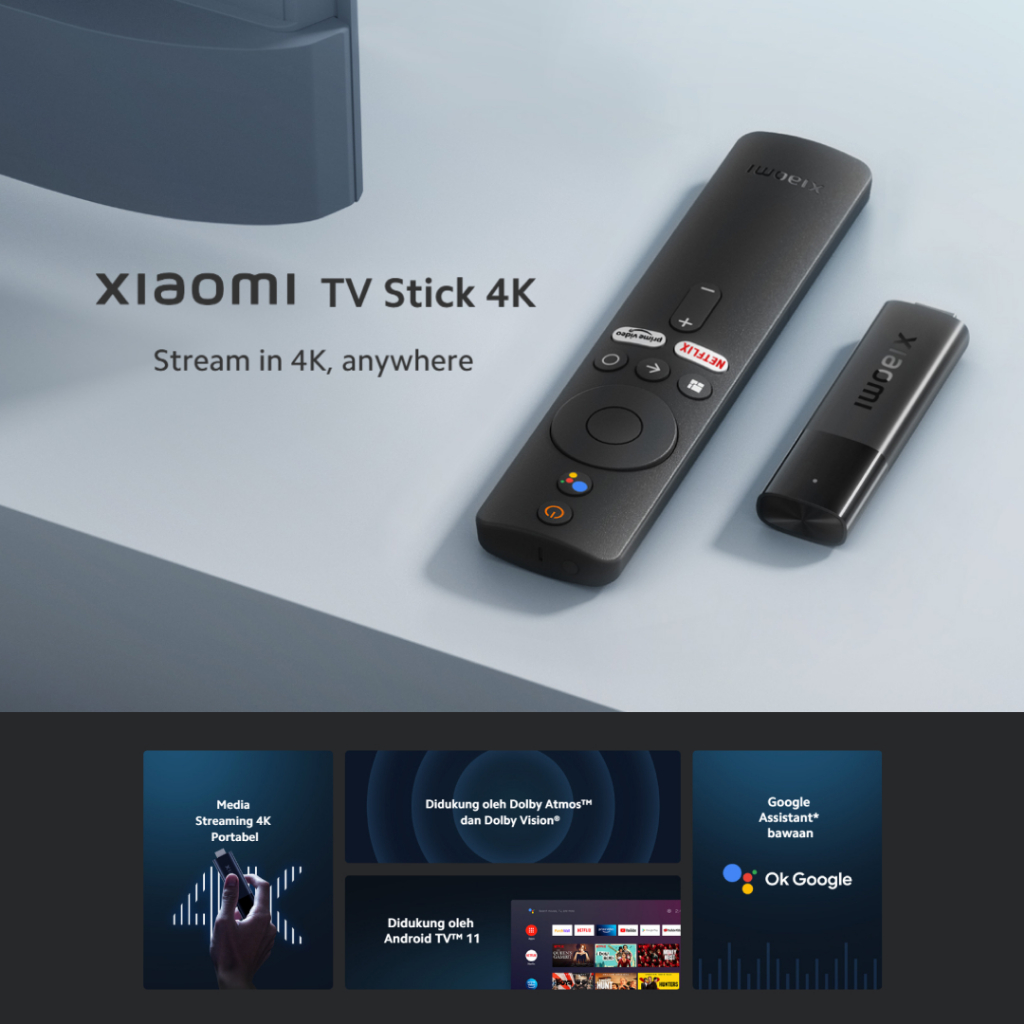Xiaomi TV Stick 4K | Ram 2Gb Rom 8Gb | Android TV 11.0 | Support Google Assistant & Smart Cast
