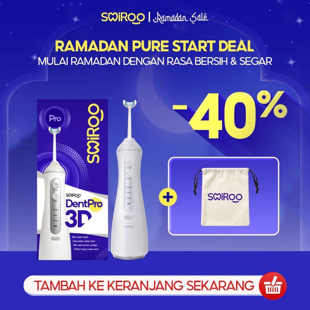 Smiroo 3D water flosser berputar 360 derajat, desain U, 5 nozzle, dan tekanan kuat untuk pembersihan optimal
