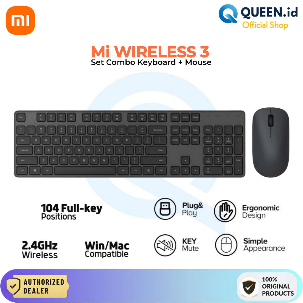 Xiaomi Mijia Keyboard Mouse 3 Combo Set Wireless Full Size 104 Keys - Slim USB 2.4Ghz