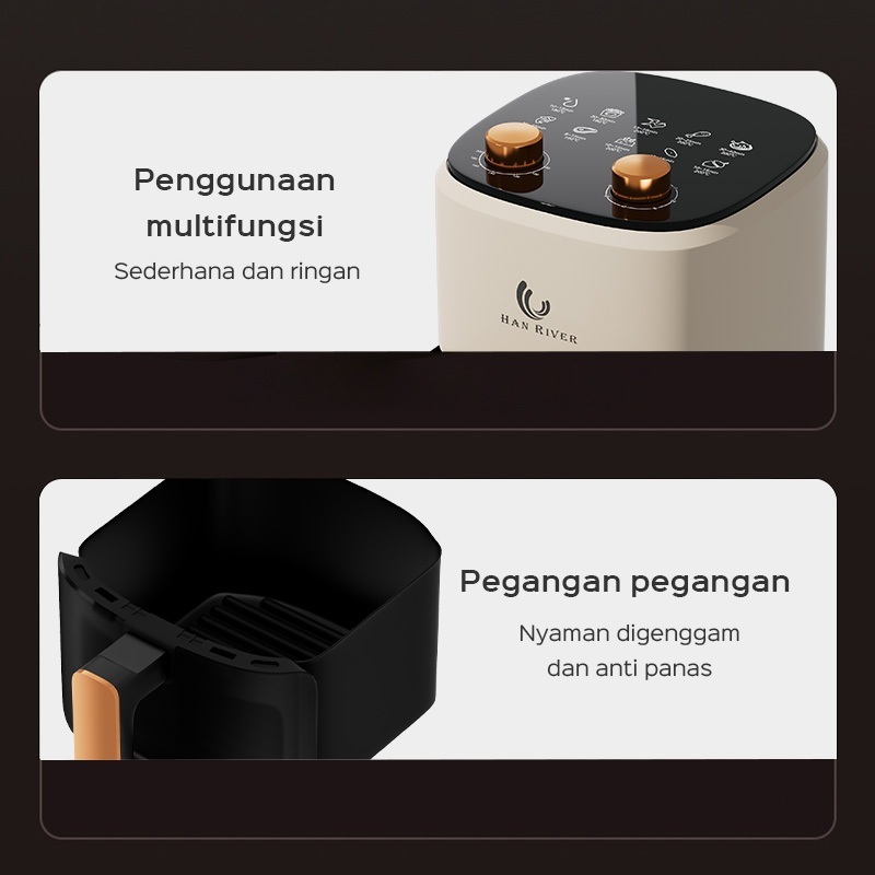 HAN RIVER Air Fryer 8L Penggorengan Udara Visual 650W LowWatt Elektrik Alat Menggoreng Listrik