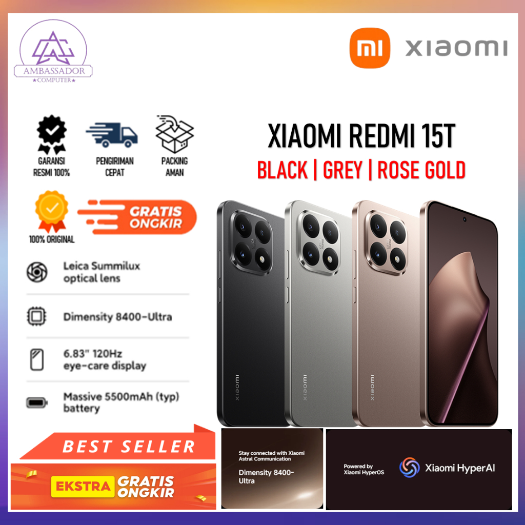 Xiaomi Redmi 15T 12/512GB Leica Lens 5500mAh | Black,Grey,Rose Gold
