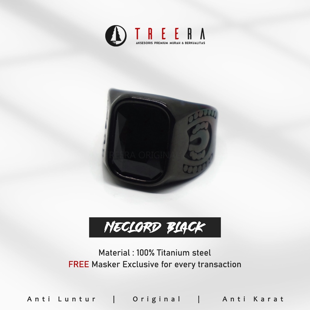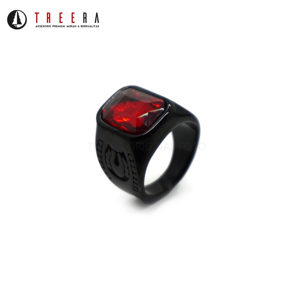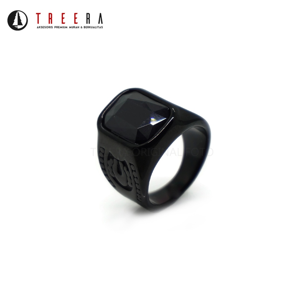 Treera - Cincin Titanium Pria Hitam Batu Hitam Premium Original