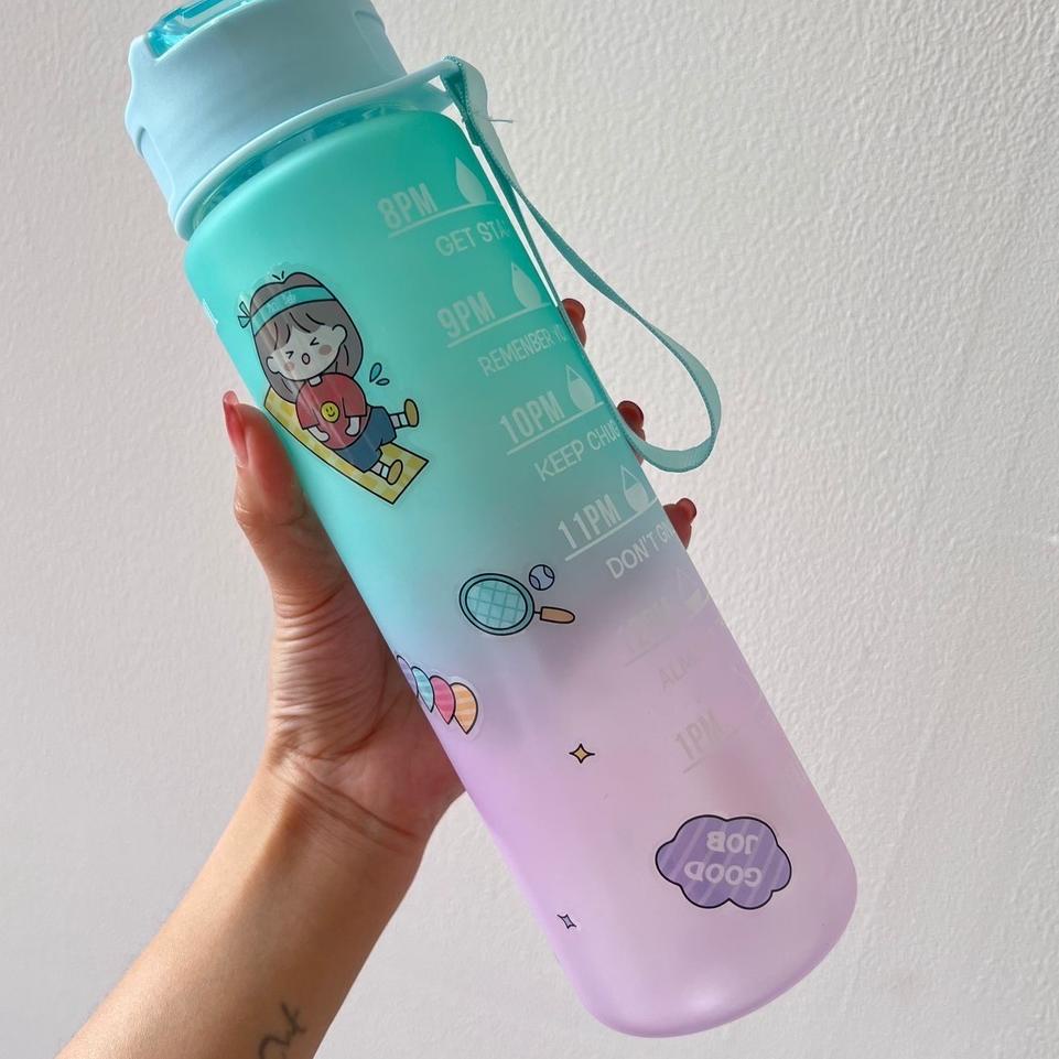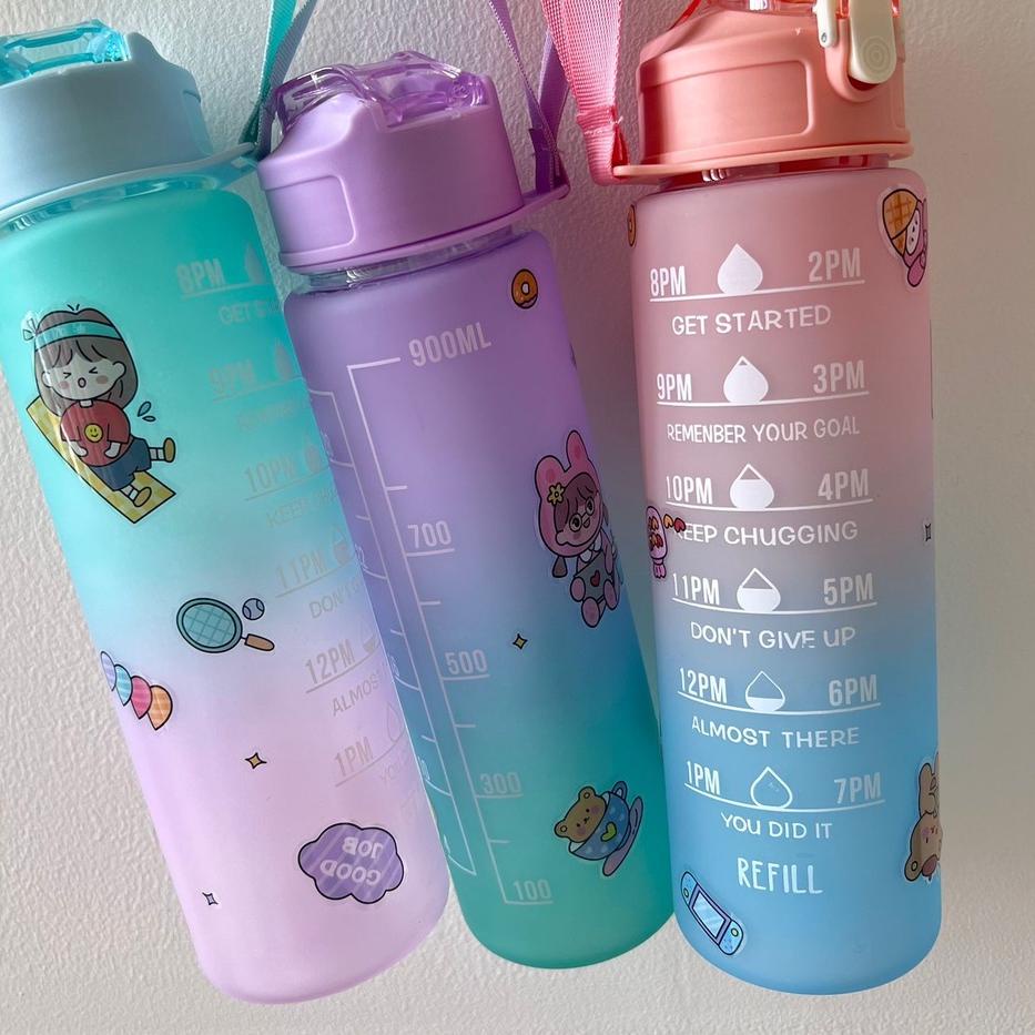 Tren Kekinian.. BOTOL MINUM 1 LITER 900 ML WARNA GRADASI / BOTOL MINUM VIRAL MURAH free tali dan free stiker random