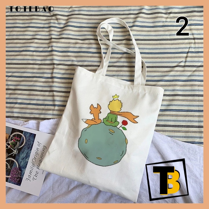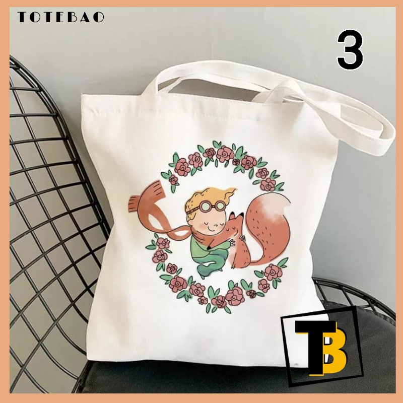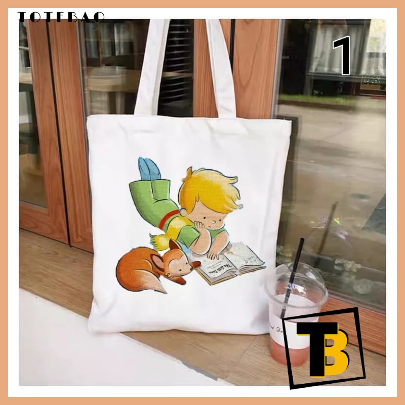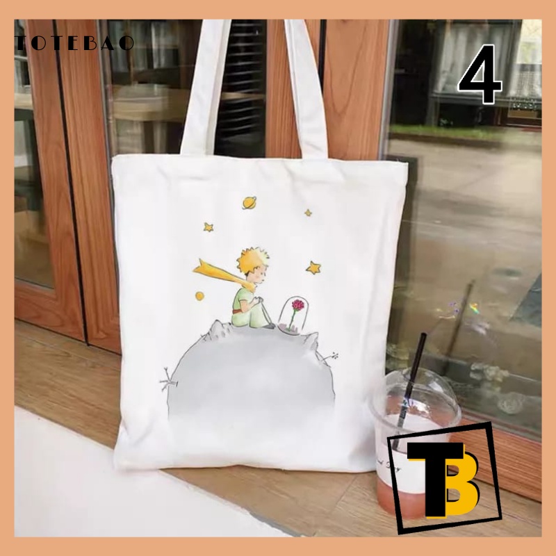 Tren Mode Tas Tote Nilon Gambar Kartun Tas Belanja Korea Tas Bahu Serbaguna Harian Wanita Tas Tangan Pola Pangeran Kecil