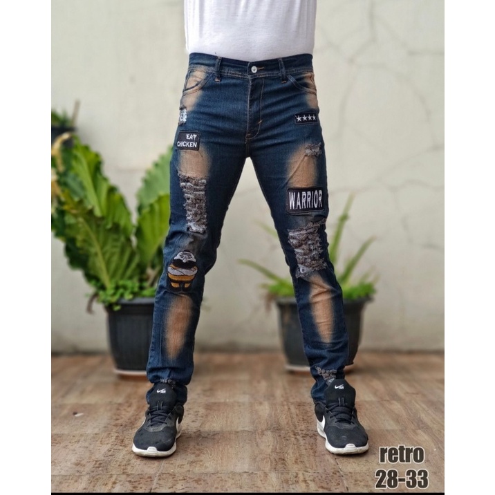 Tren Saat Ini Hits Terbaru Jeans Panjang Model Skiny Sobek Extreme Bordir Emblem / Celana Jeans Distro Original Soft Jeans