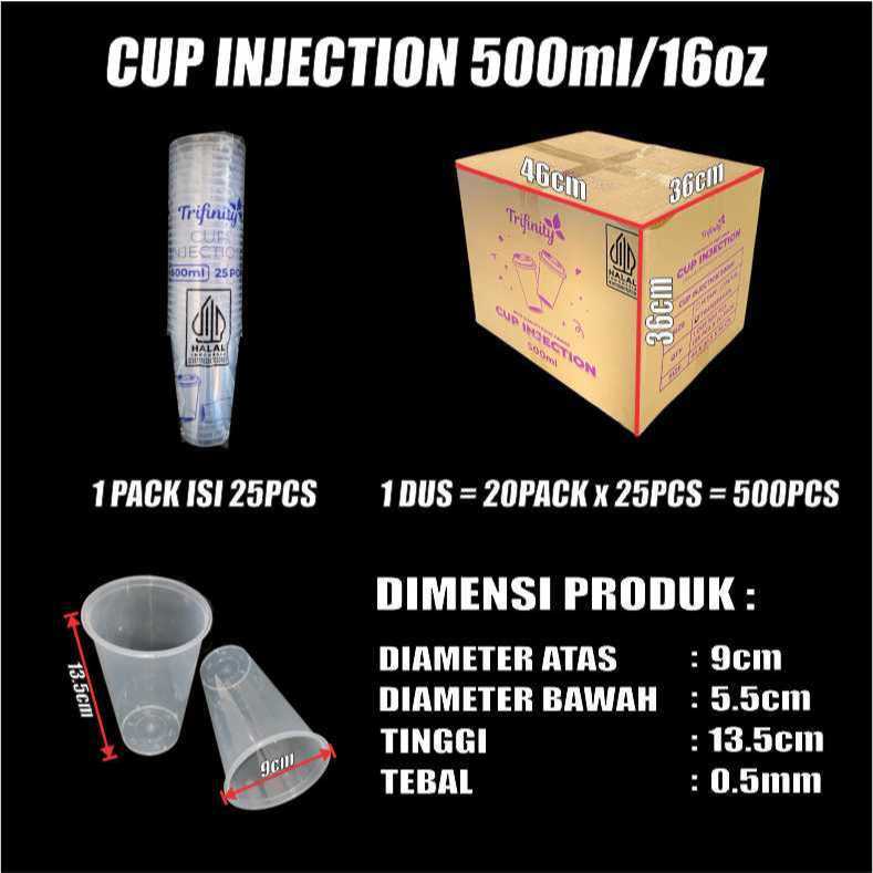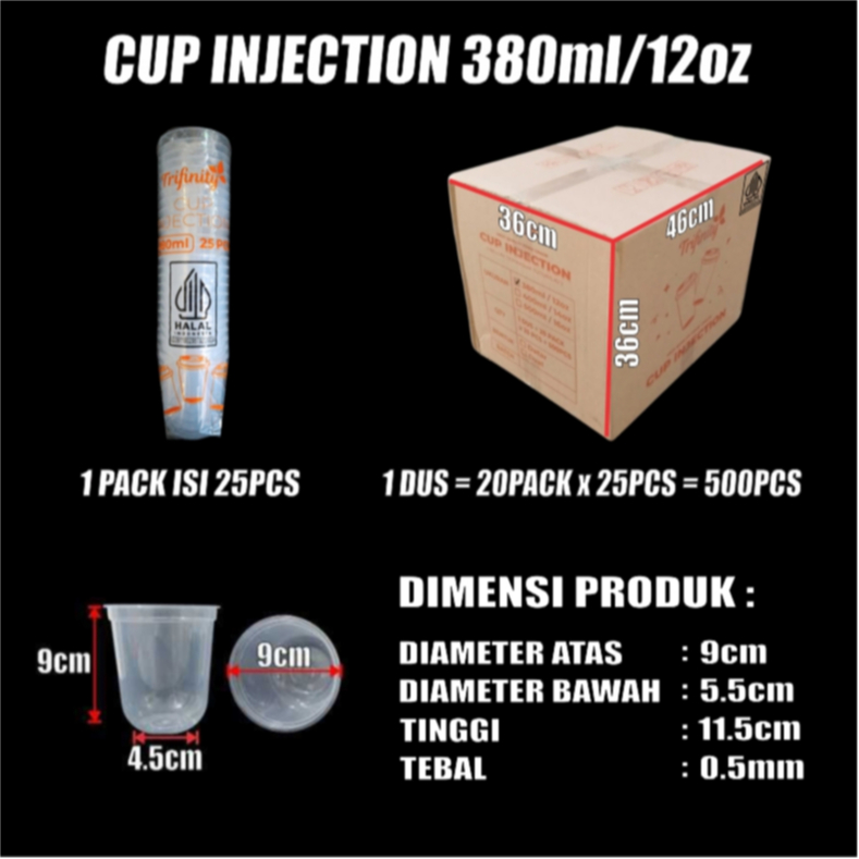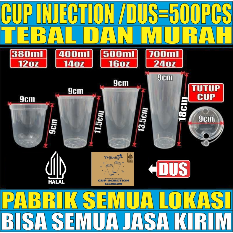 Trifinity Cup Injection HALAL Tebal 12oz 380ml 14oz 400ml 16oz 500ml 24oz 700ml Tutup Sambung Dus JSK