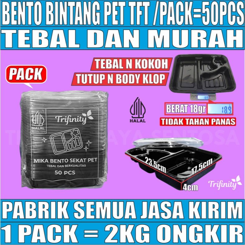 Trifinity Mika Bento Tebal 29gr Bintang 4 Sekat PET / HIPS Tahan Panas Pack Tray Bekal Makan JSP