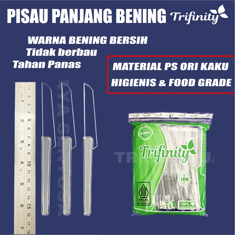 Trifinity Pisau Kue Tart Steril Cake Ulang Tahun Tebal 8.6gr / Pisau Buah Hitam Bening Dus JSK