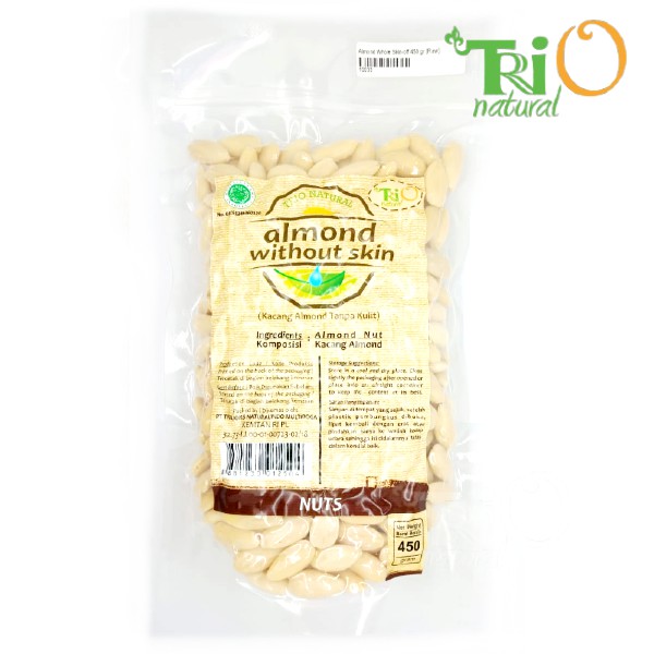 Trio Natural Almond Whole Without Skin Raw 450 gram