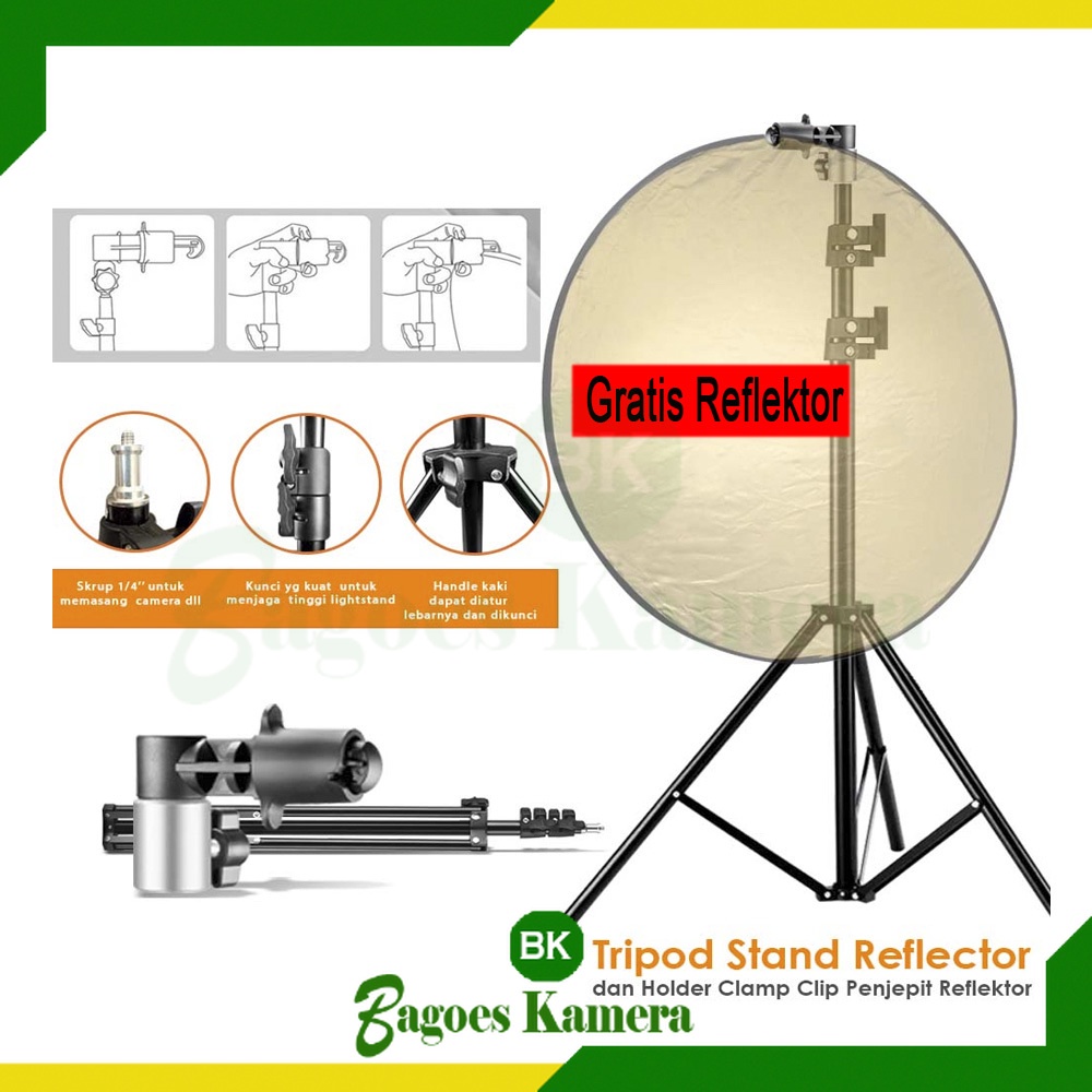 Tripod Stand Reflector dan Holder Clamp Clip Penjepit Reflektor Free Reflektor Cahaya Tripod Stand Light Stand