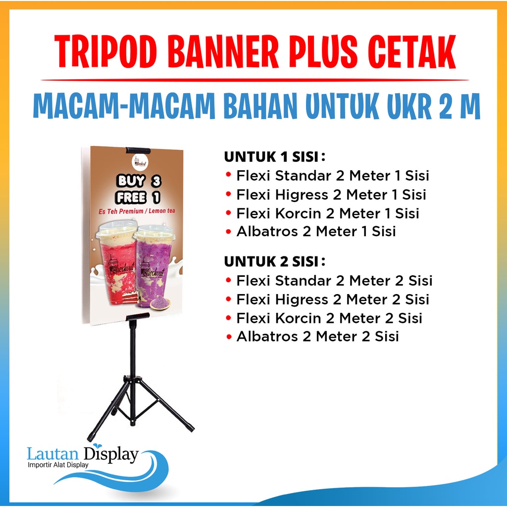 Tripod Standing Banner Plus Cetak Flexi Banner Standard, Albatros, Korcin Ukuran 2 Meter [1/2 Sisi]
