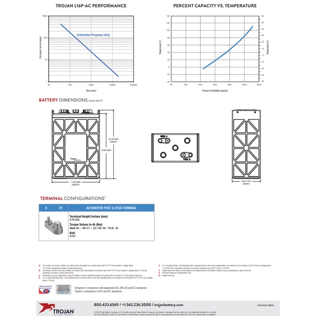Trojan Battery Deep Cycle L16P-AC 6V 420Ah Flooded Lead Acid