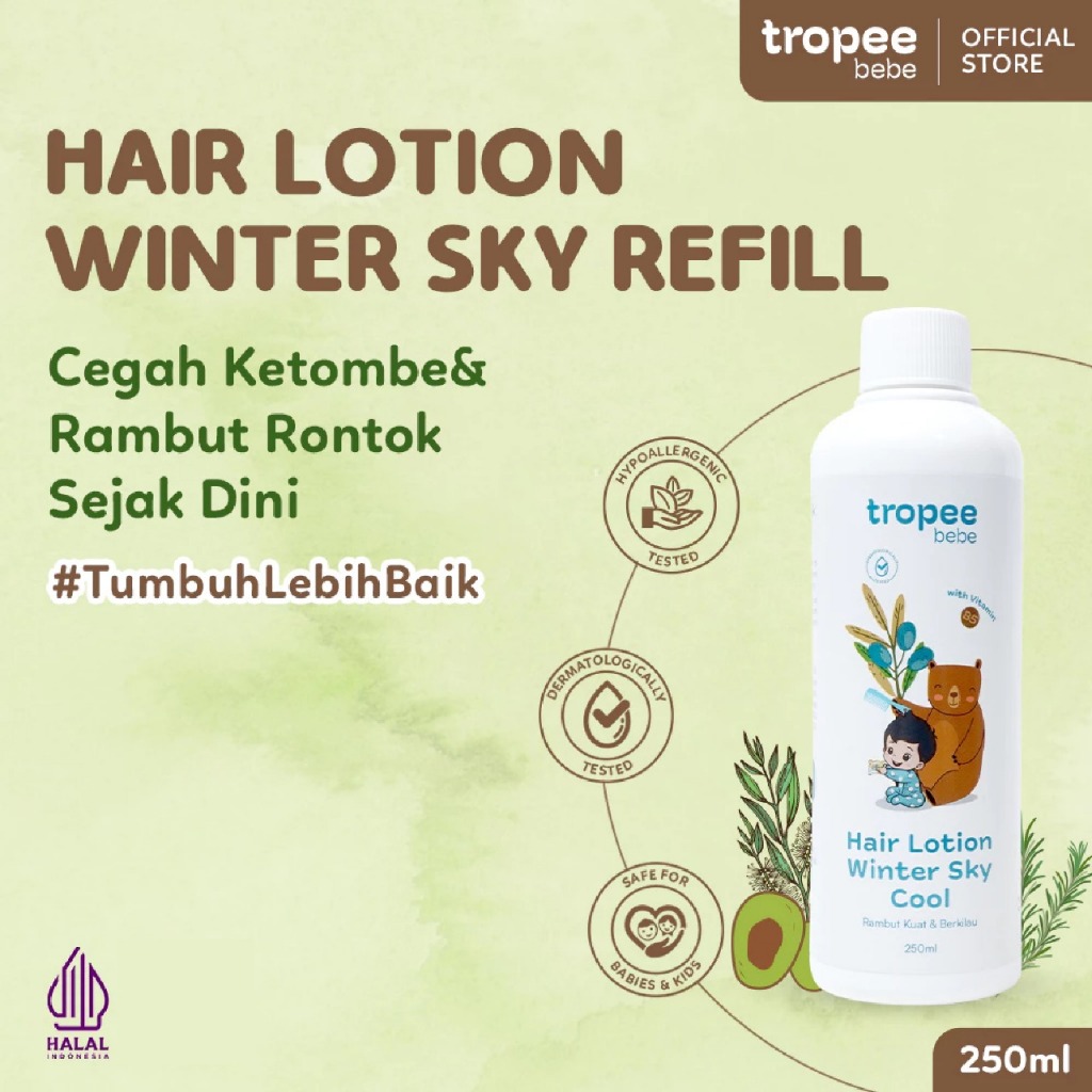 Tropee Bebe Hair Lotion Winter Sky Cool Refill 250ml | Lotion Rambut | Perawatan Menyuburkan Rambut Bayi dan Anak