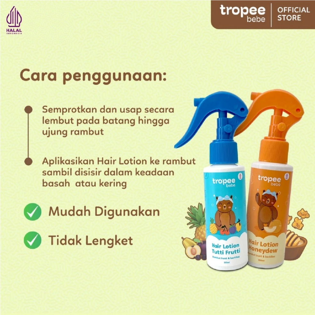 Tropee Bebe Hair Lotion Fruity Series 100ml | Lotion Rambut | Perawatan Rambut Bayi dan Anak | Anti Kusut | Anti Lepek | Menyuburkan Rambut