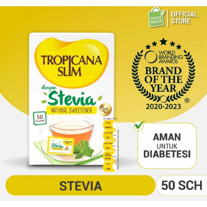 Tropicana Slim Gula Stevia Nol Kalori, Aman Untuk Diabetes (50 Sachet).