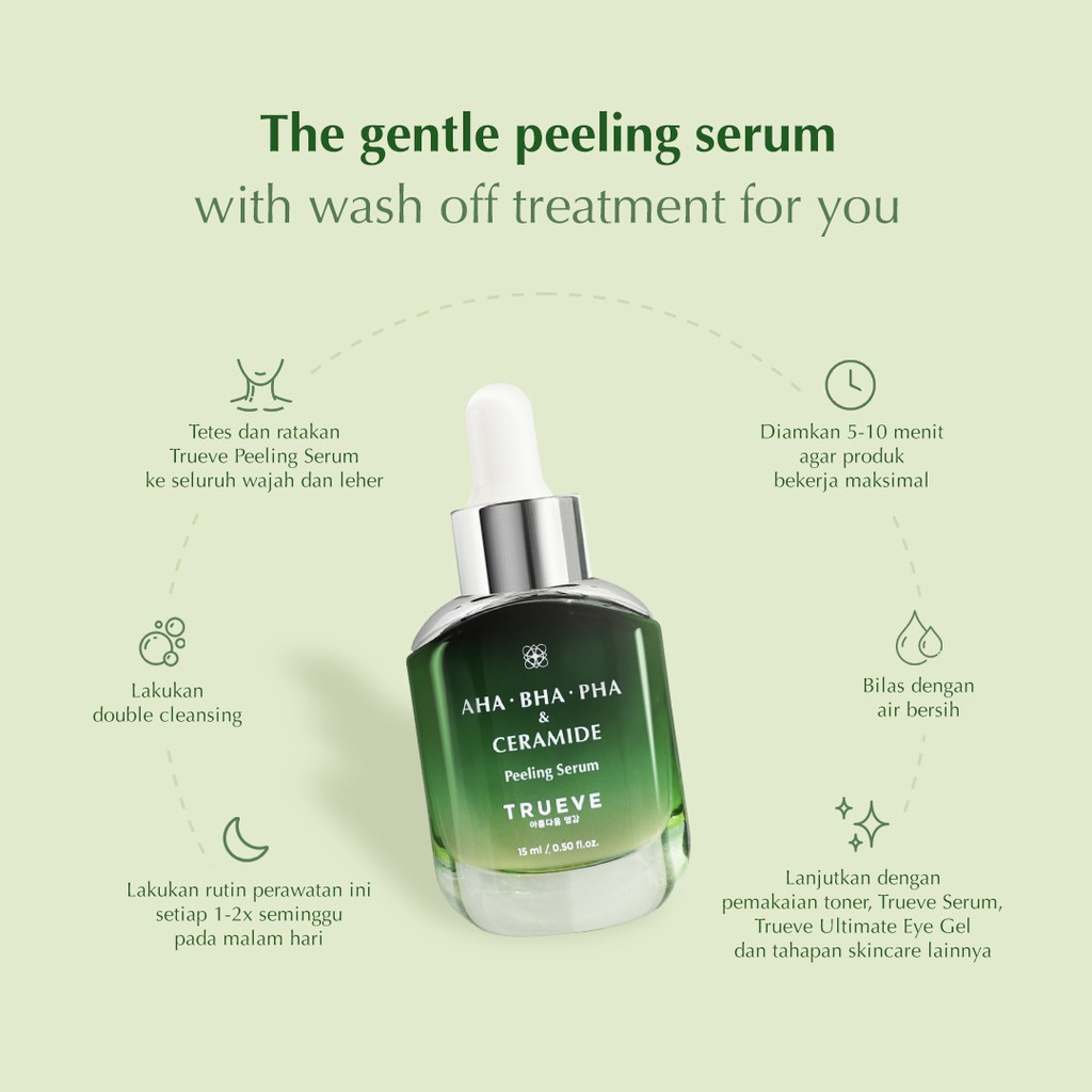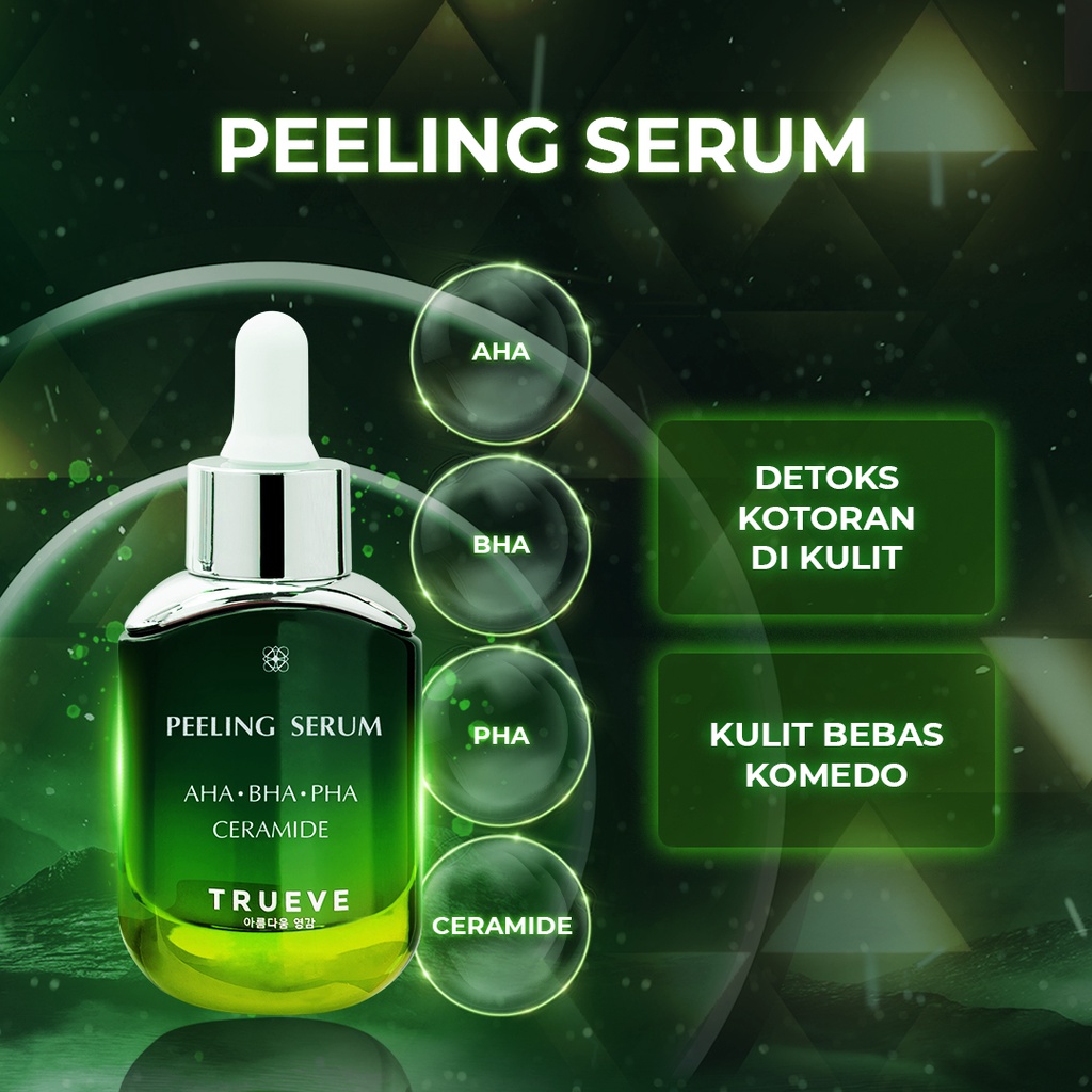 TRUEVE Peeling Serum (10% AHA + 2% BHA + 2% PHA + Ceramide - Perawatan Wajah Eksfoliasi Wajah dari kotoran, Komedo, Kulit Mati, Kotoran Mencerahkan Menghaluskan Tekstur Kulit Menjaga Skin Barrier Cocok untuk Semua Jenis Kulit)