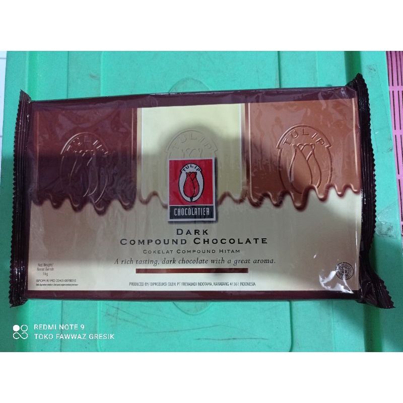 Tulip Dark Compound Chocolate 1kg - Dark Coklat 1 kg / Dark Coklat Tulip Compound Batang 1 kg