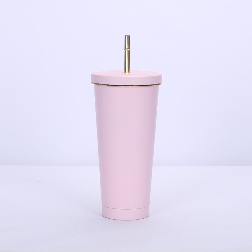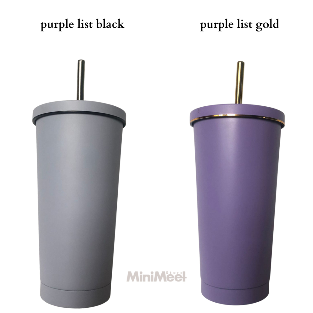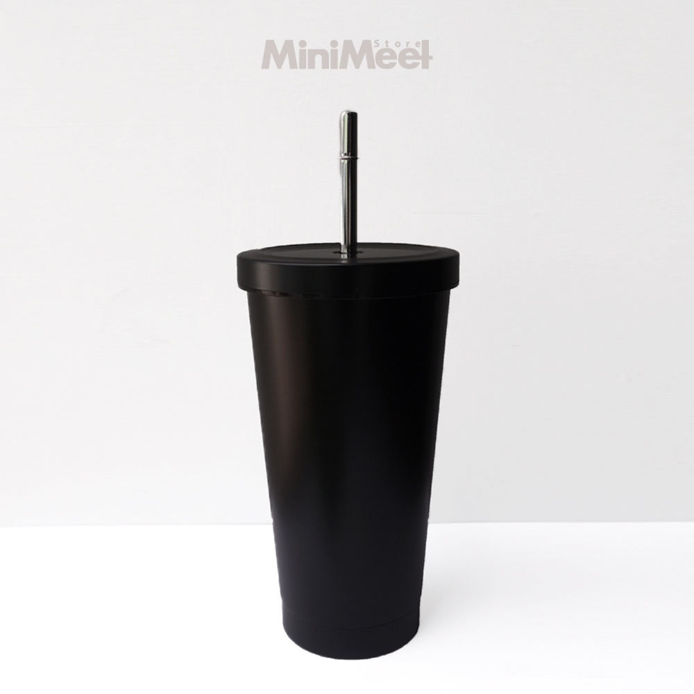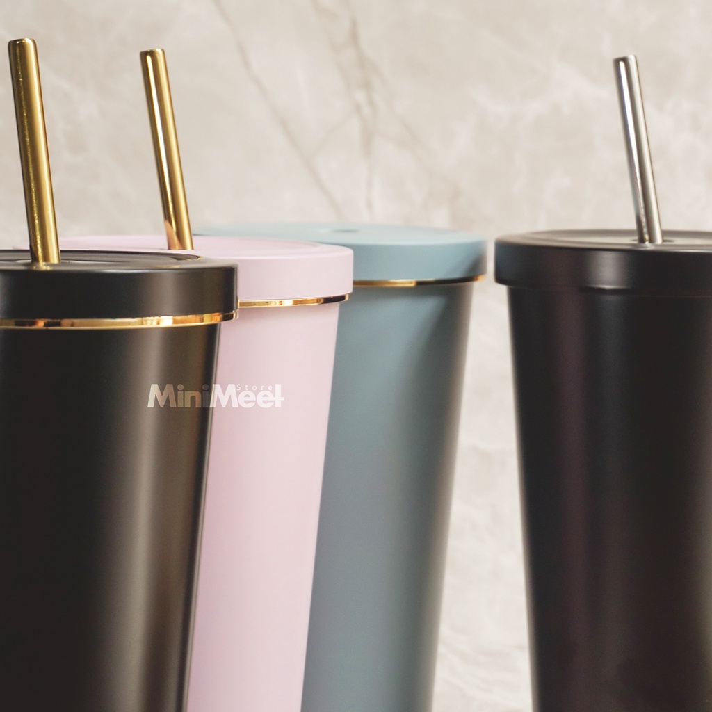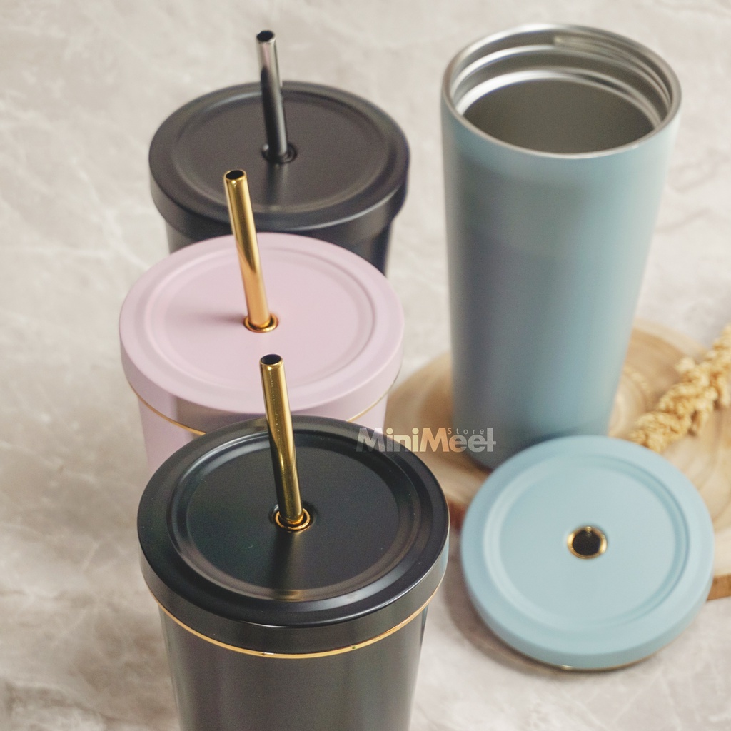 Tumbler Stainless Steel Cup with Straw Tempat Minum Boba Kopi Tea 500 ml Simple minimalis