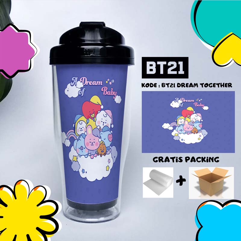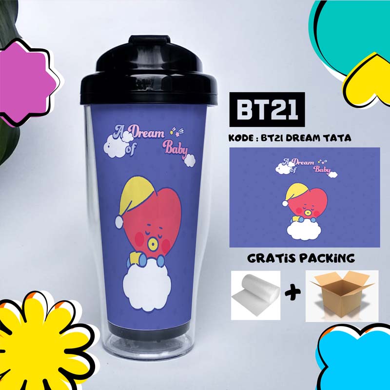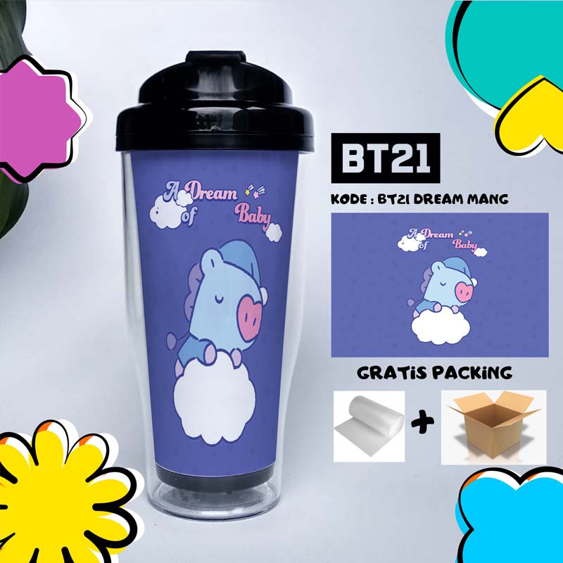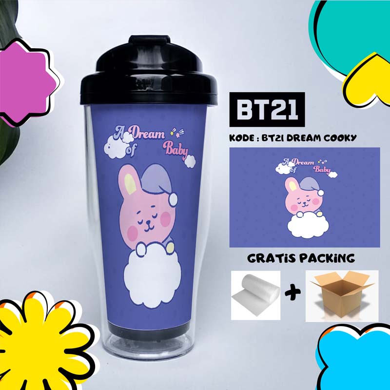 Tumbler Custome BTS BT21 Dream Baby / Kpop Merchandise Botol Minum Unofficial Murah bt21 Taehyung Jimin Jungkook Suga Jhope RM Jin / Botol Minum Insert Paper / Botol Minum Viral