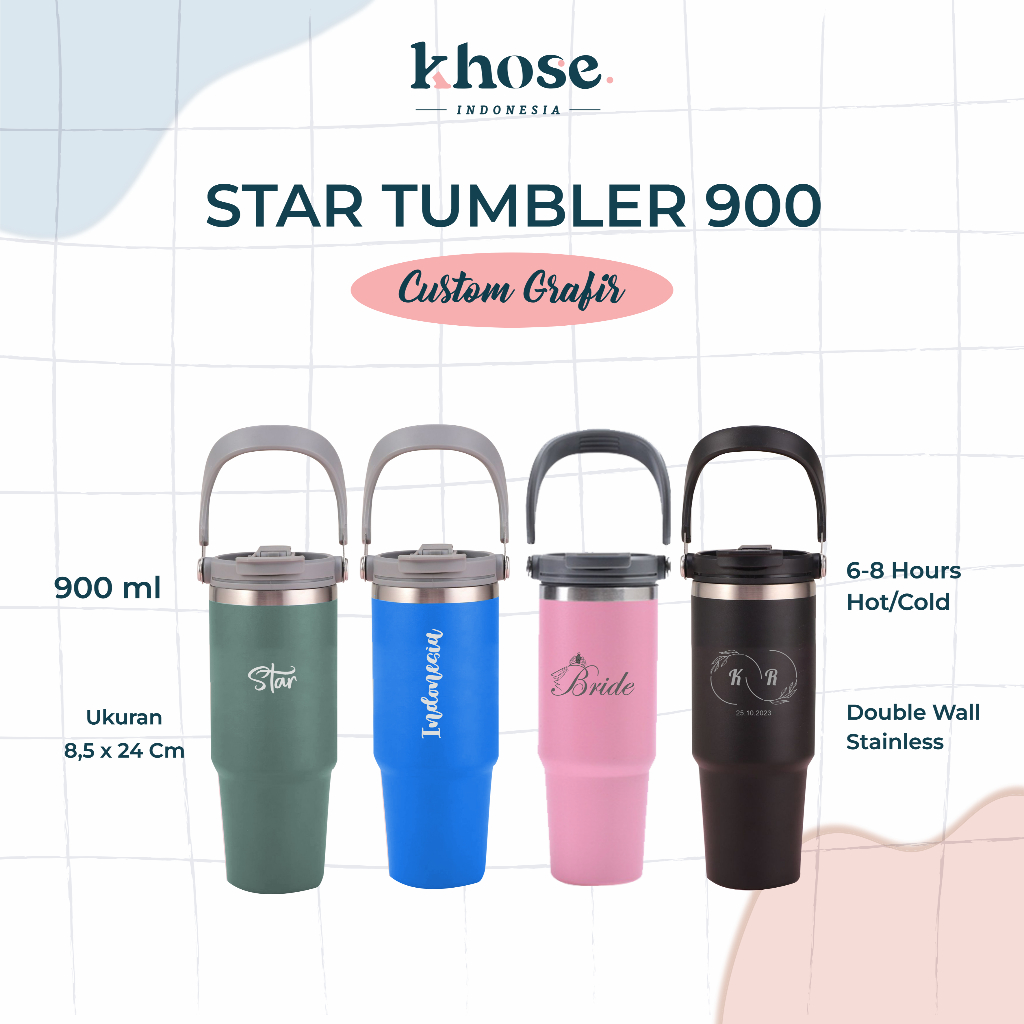 Tumbler Botol Minum Tyiso Jumbo Custom 900 ML + Sedotan Stainless Steel /Star Tumblr/ Botol Vidi / Hadiah Ulang Tahun, Nikah / Souvenir Corporate