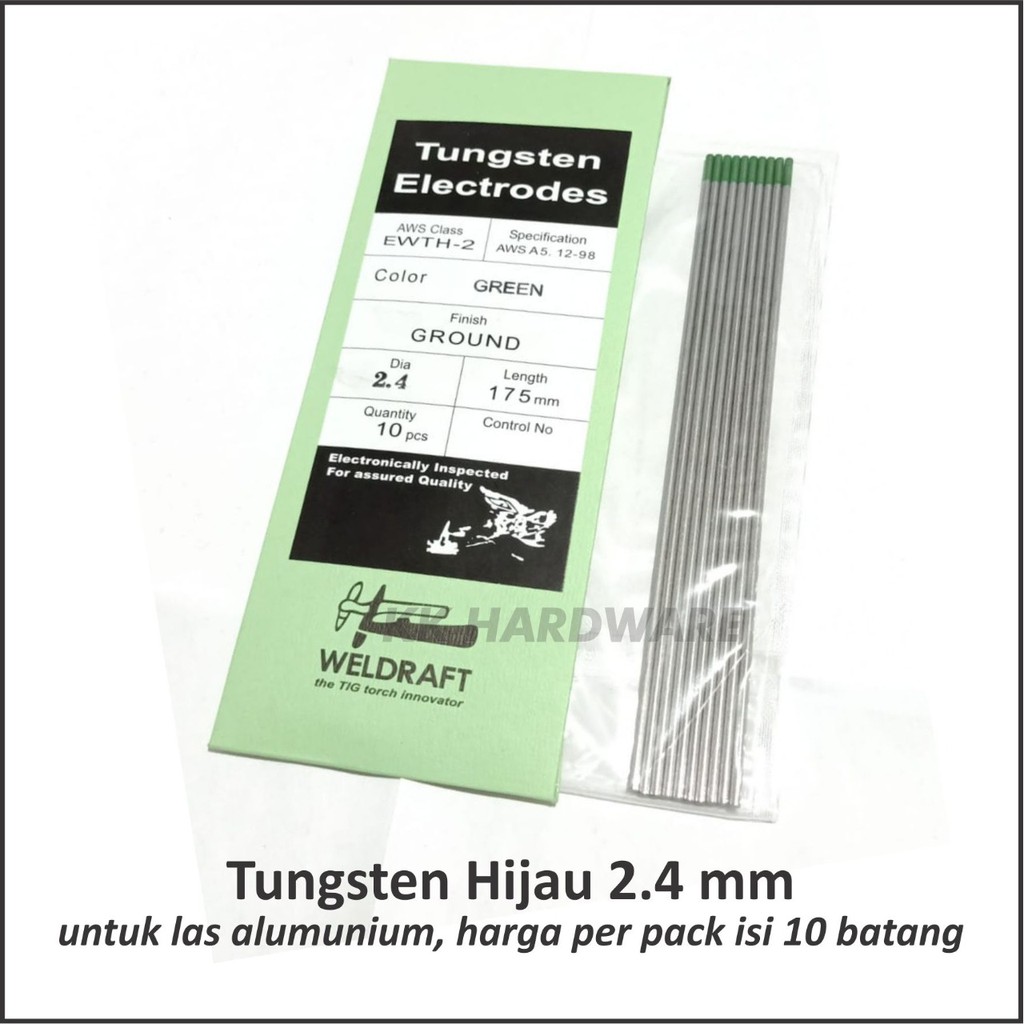 Tungsten Rod Kawat Jarum Las Argon 2.4 mm Hijau Untuk Las Aluminium Argon Welding